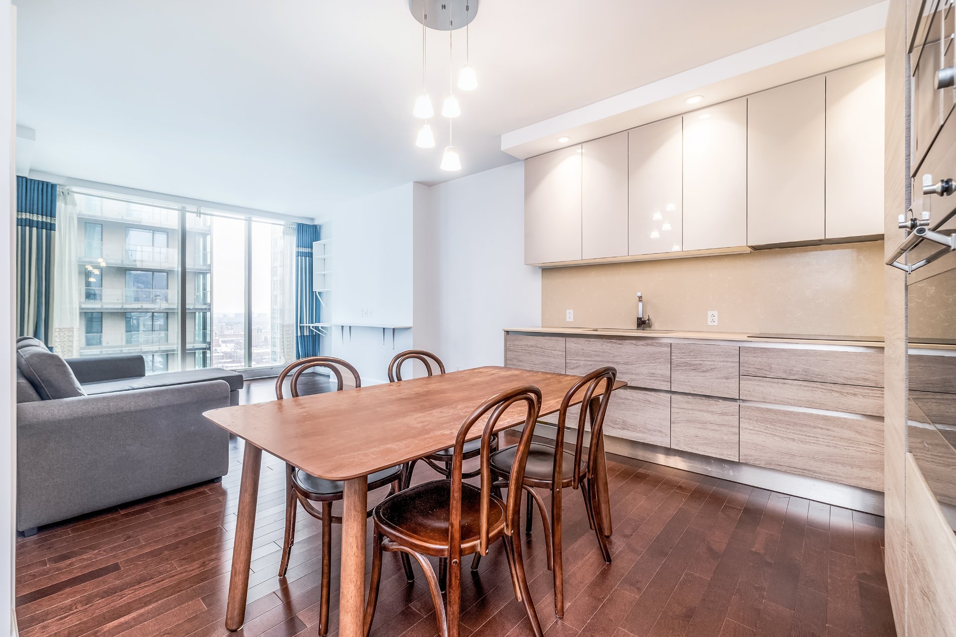 Rocabella II -- Condo de luxe au coeur du centre-ville Magnifique condo d'une chambre situé à mi-étage exposé plein sud. Aménagement à aire ouverte, cuisine élégante avec électroménagers haut de gamme, grandes fenêtres avec vue sur la ville, dressing et salle de bain moderne à quatre éléments. Commodités haut de gamme: portier 24h/24, 7j/7, salle de sport, spa, piscine, cinéma et terrasse sur le toit. À deux pas du métro, du Centre Bell, de l'ETS et du REM. Idéal pour les professionnels ou les investisseurs en quête de style, de confort et de commodité.
