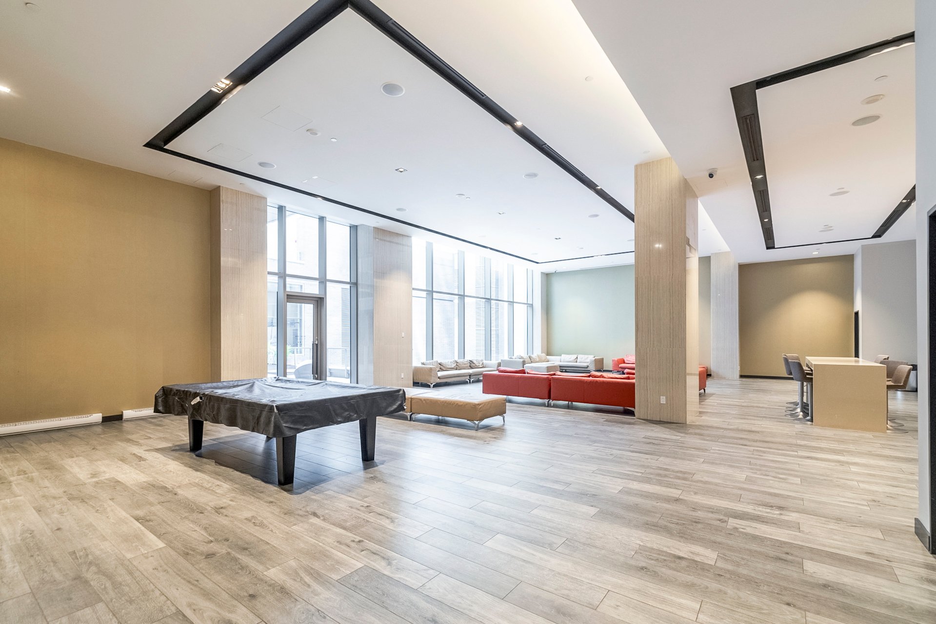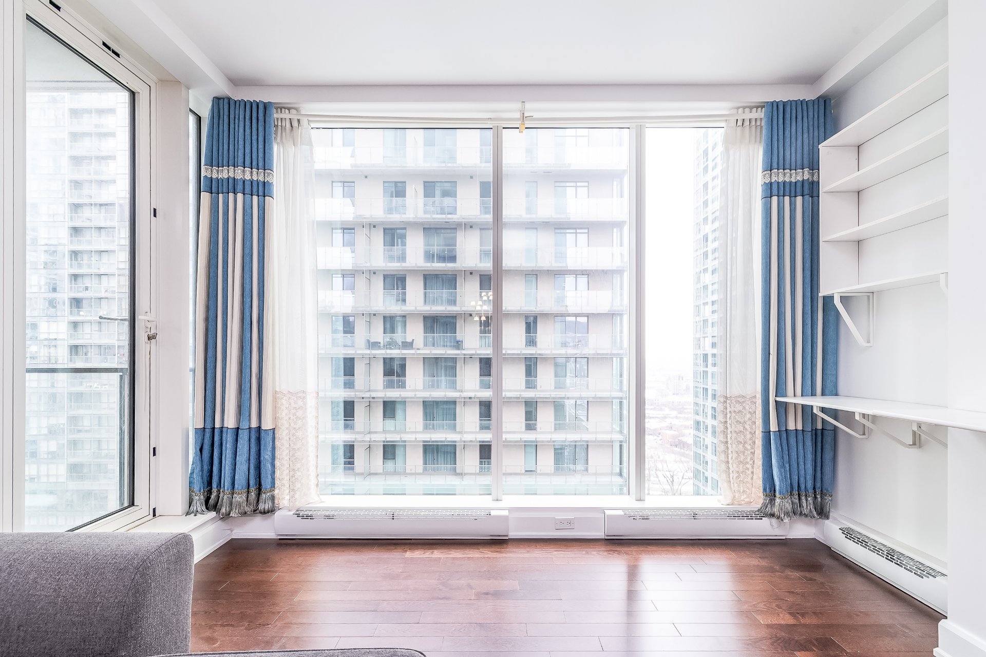 grandes fenêtres offrent une vue imprenable sur la ville