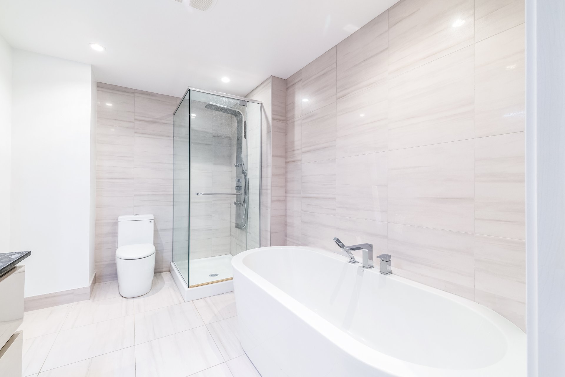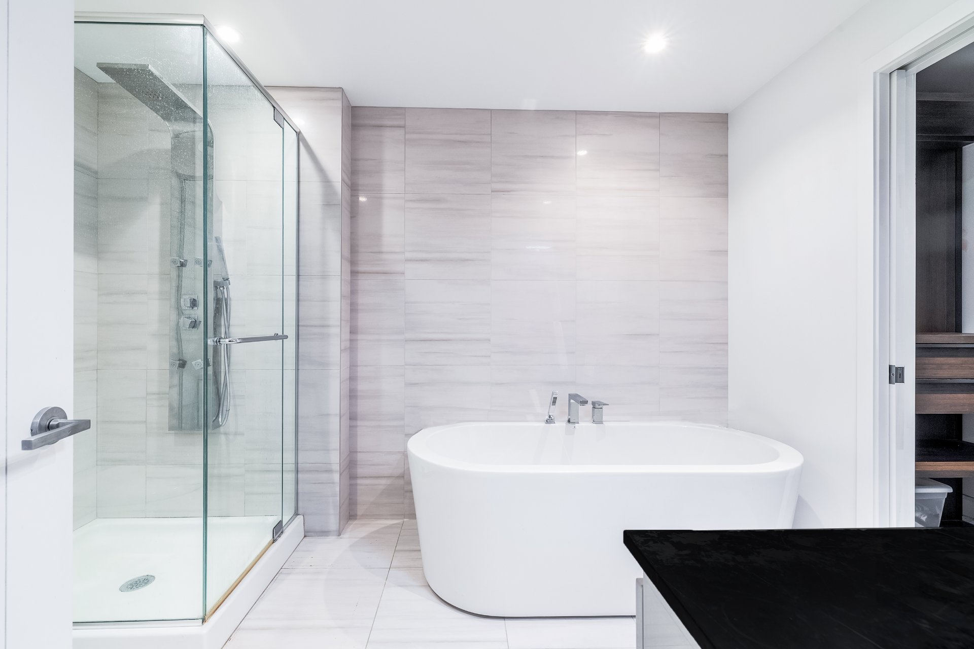 spa avec des finitions élégantes, une douche vitrée séparée
