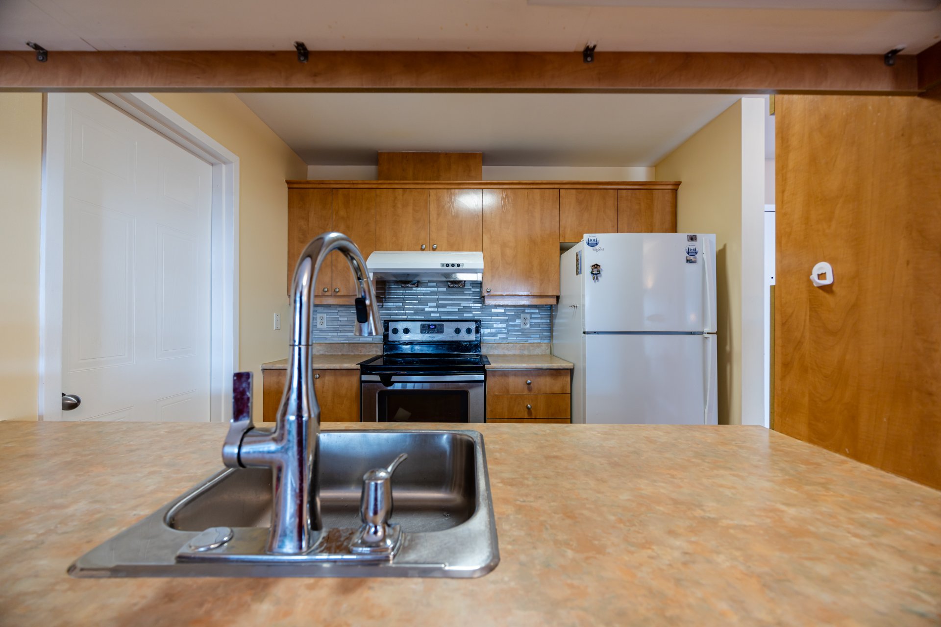 Cuisinière, four, réfrigérateur, lave-vaisselle, laveuse et sécheuse, climatiseur mural.