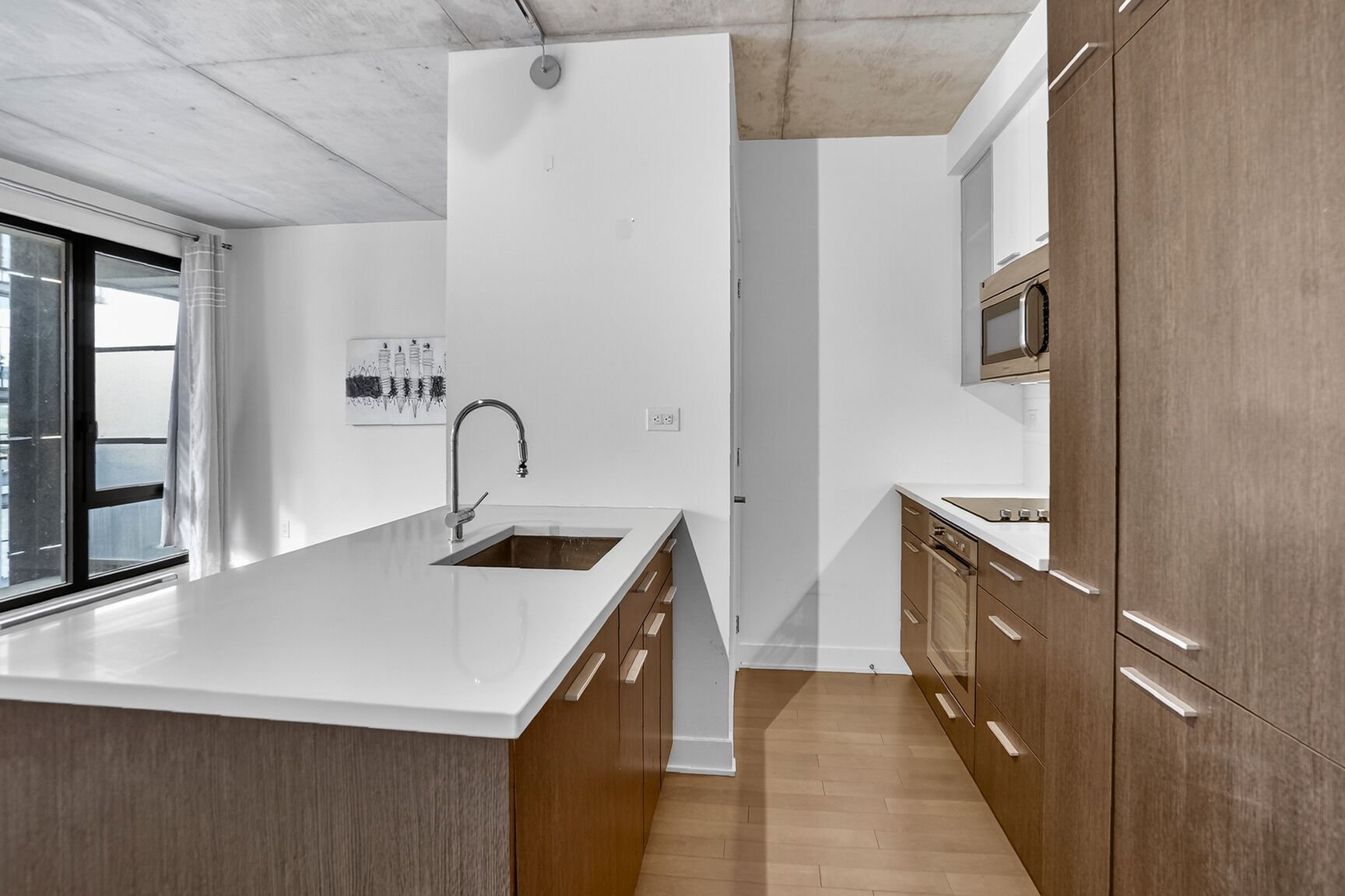 modern kitchen with clean finishes, and a comfortable