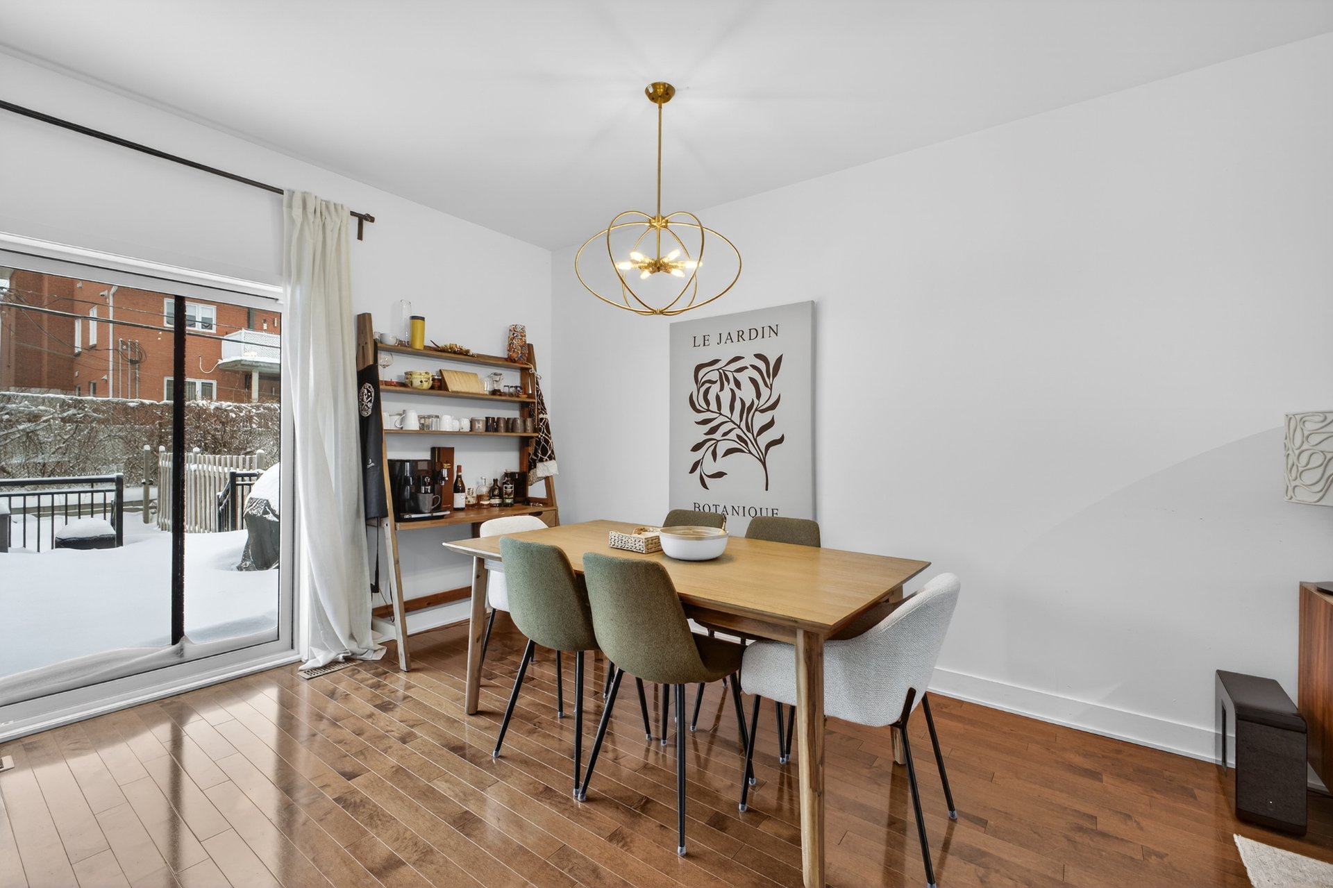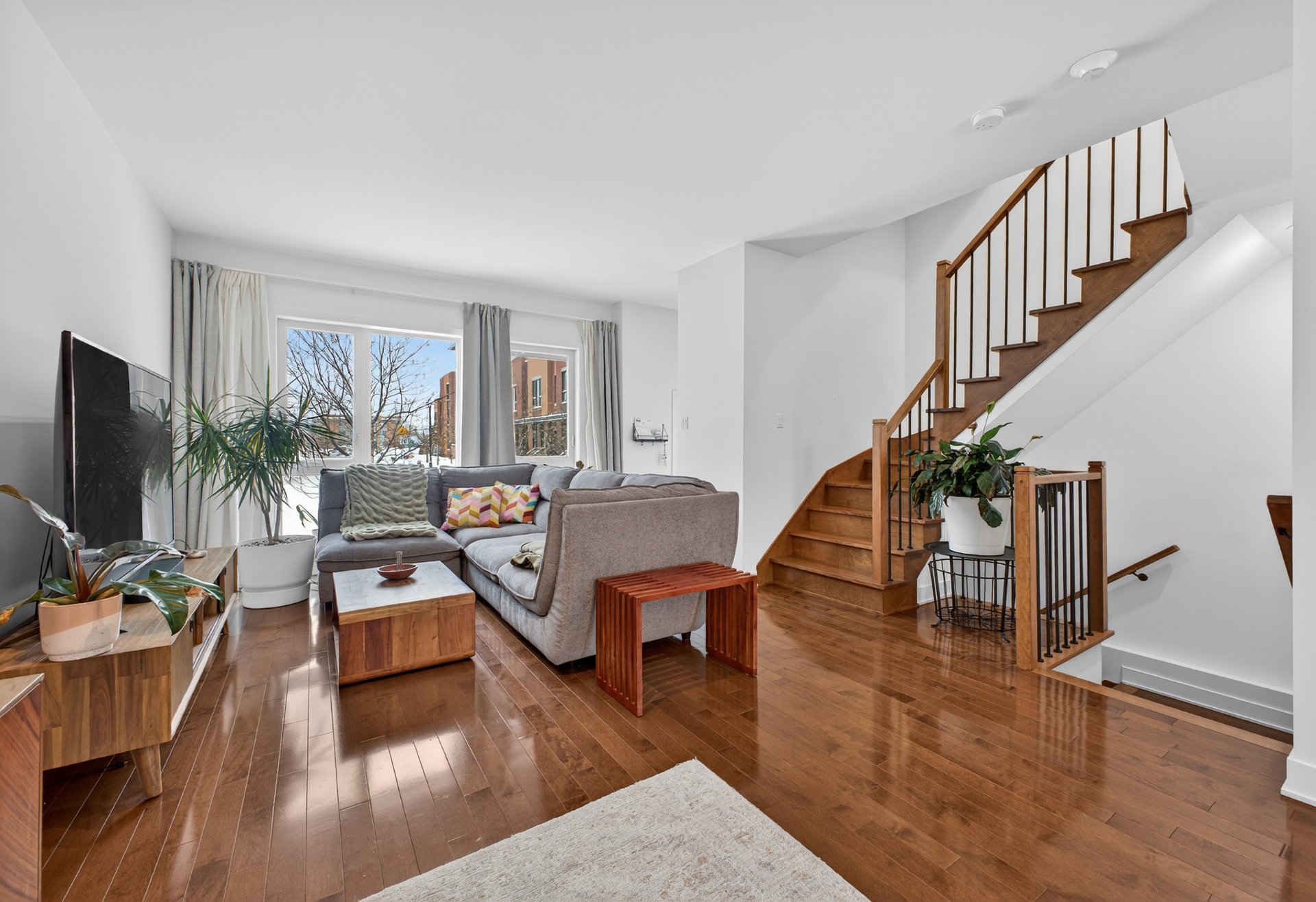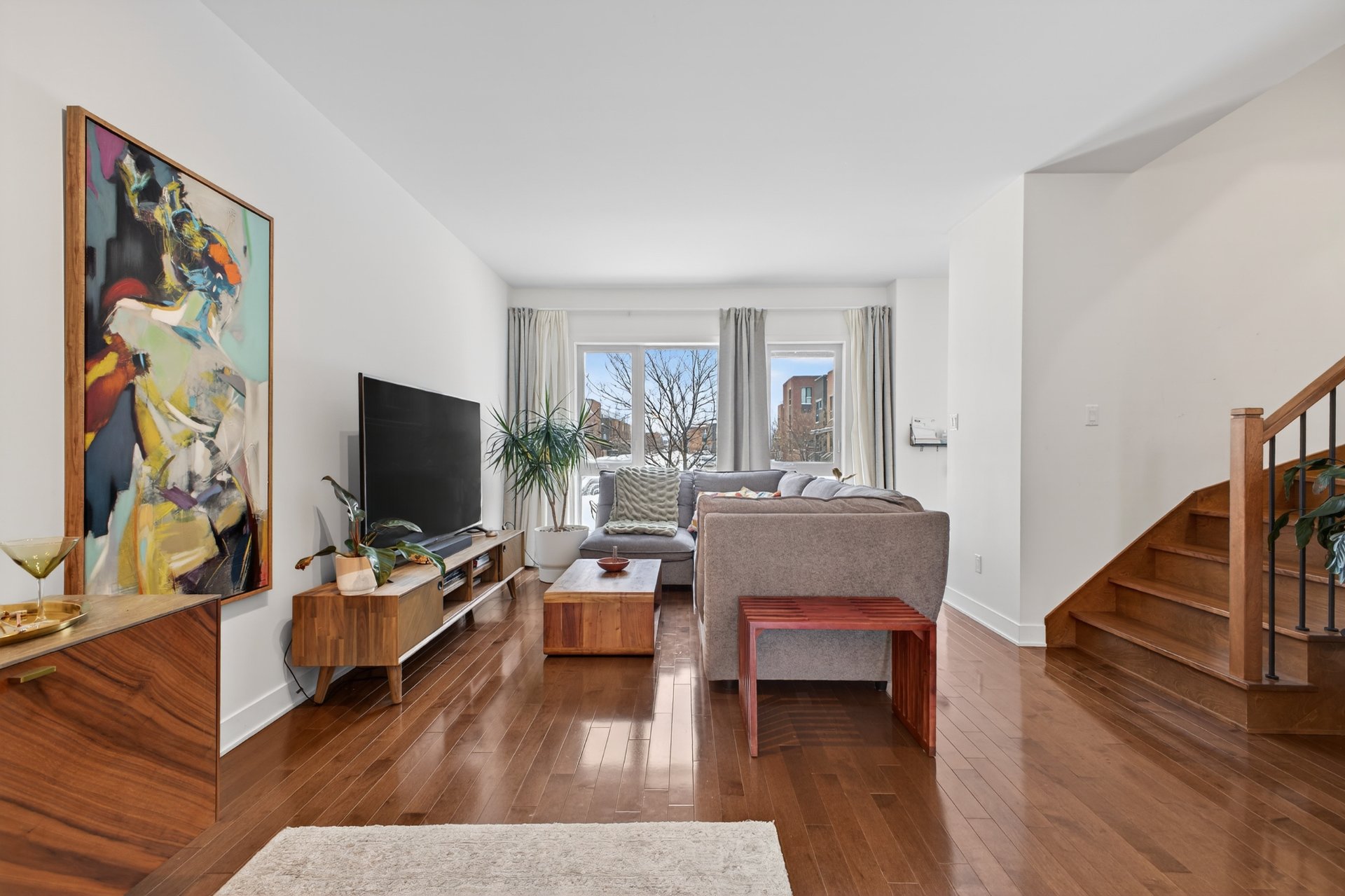 - Open concept living room and dining room, hardwood floor