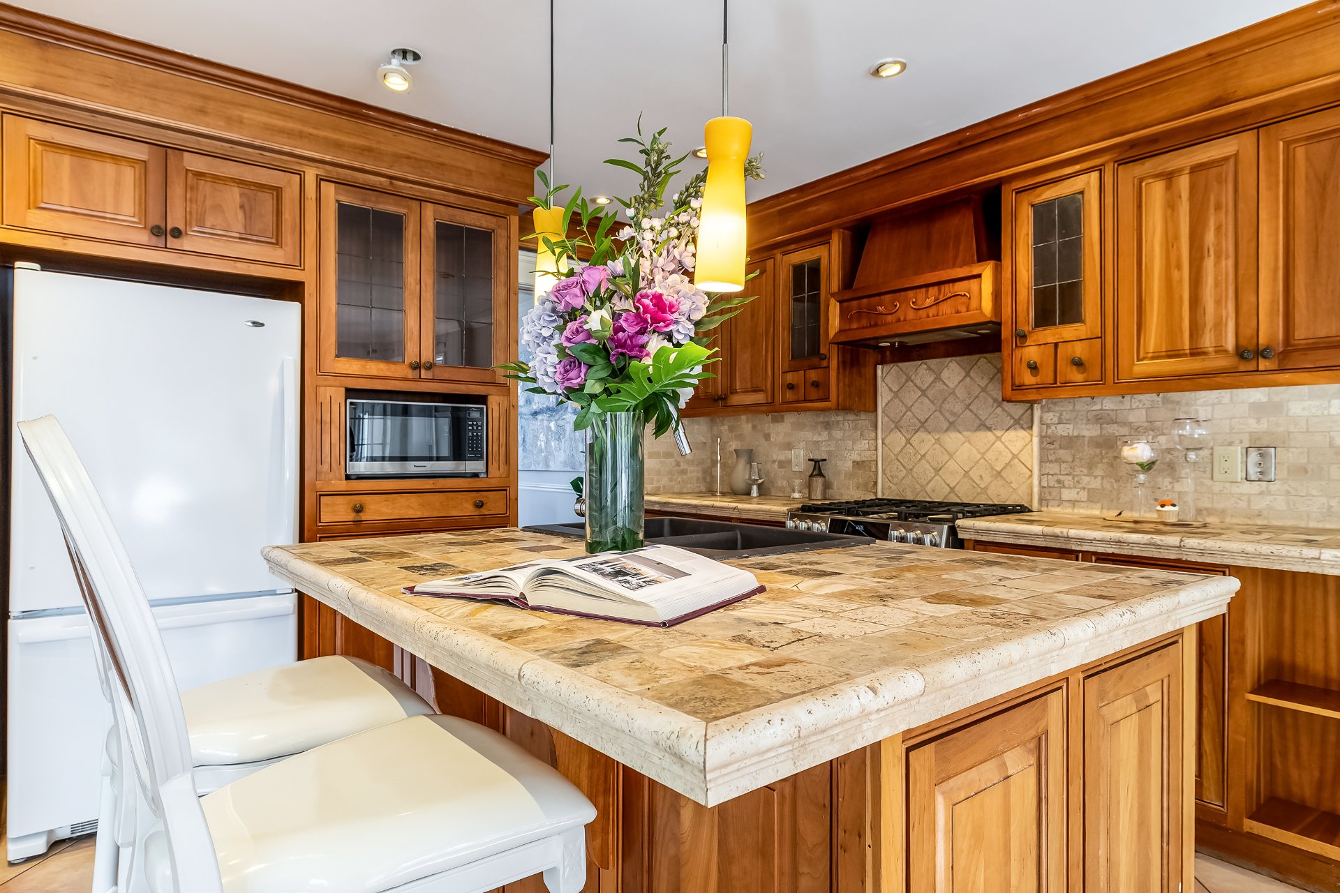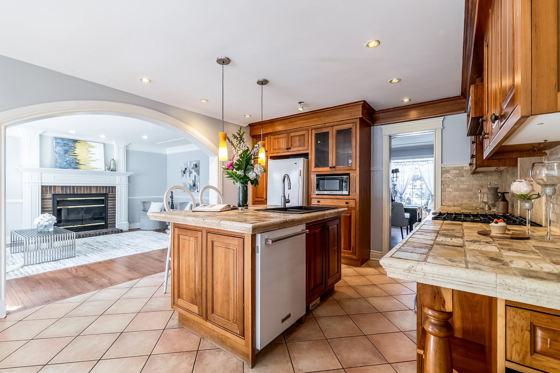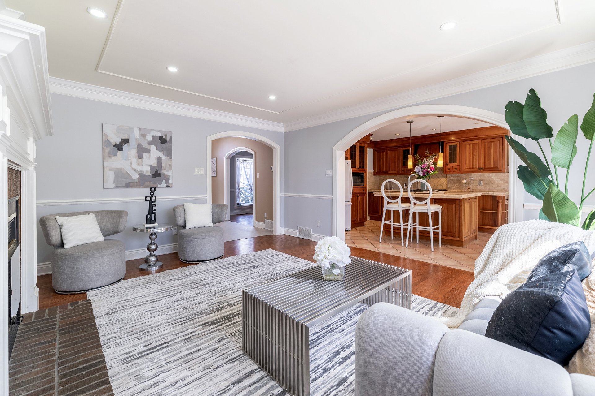 ceiling that immediately sets a warm tone. The main living