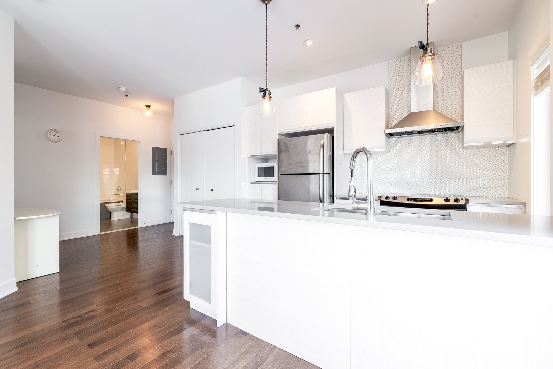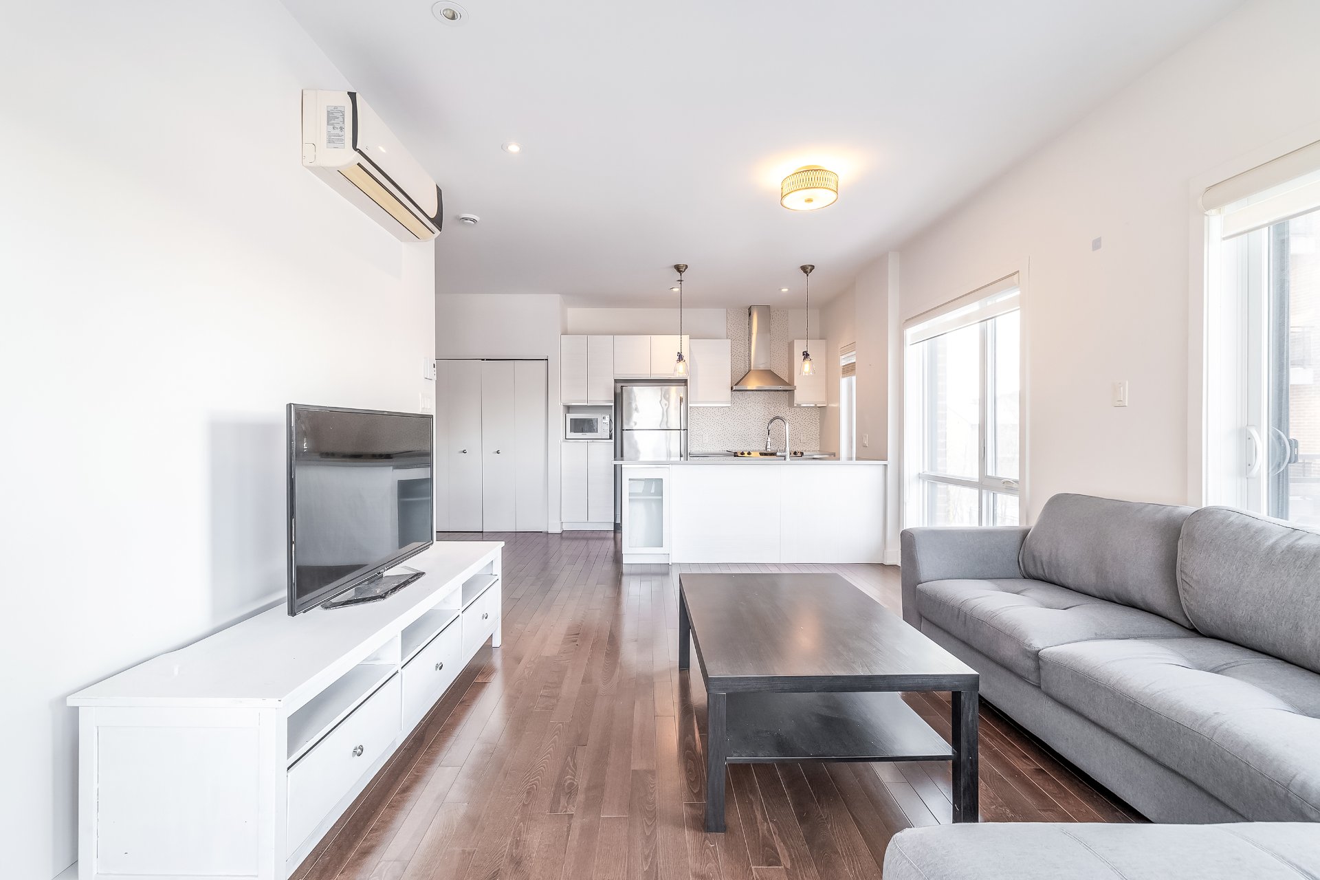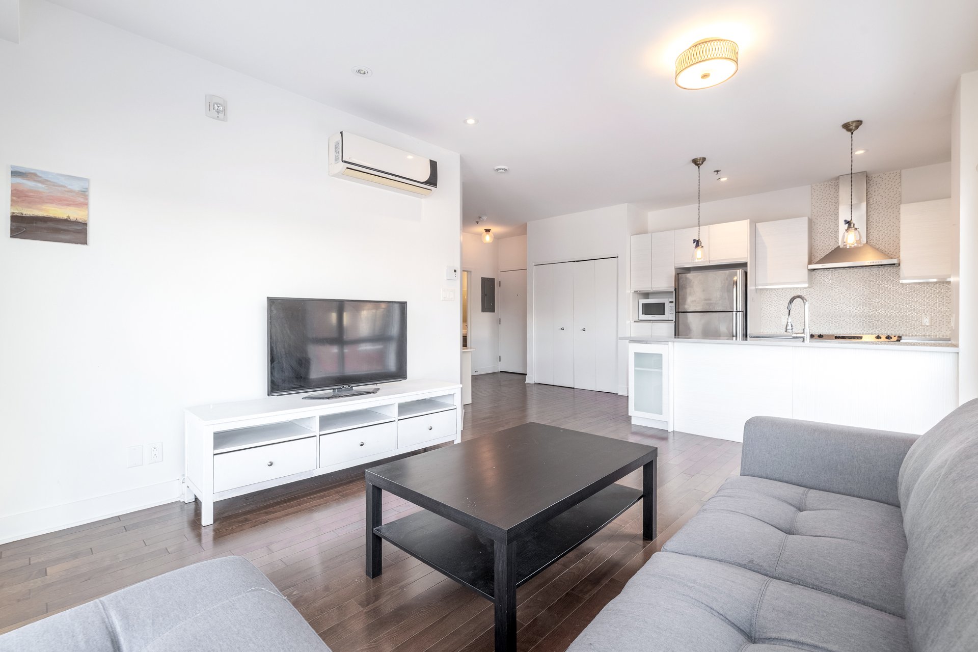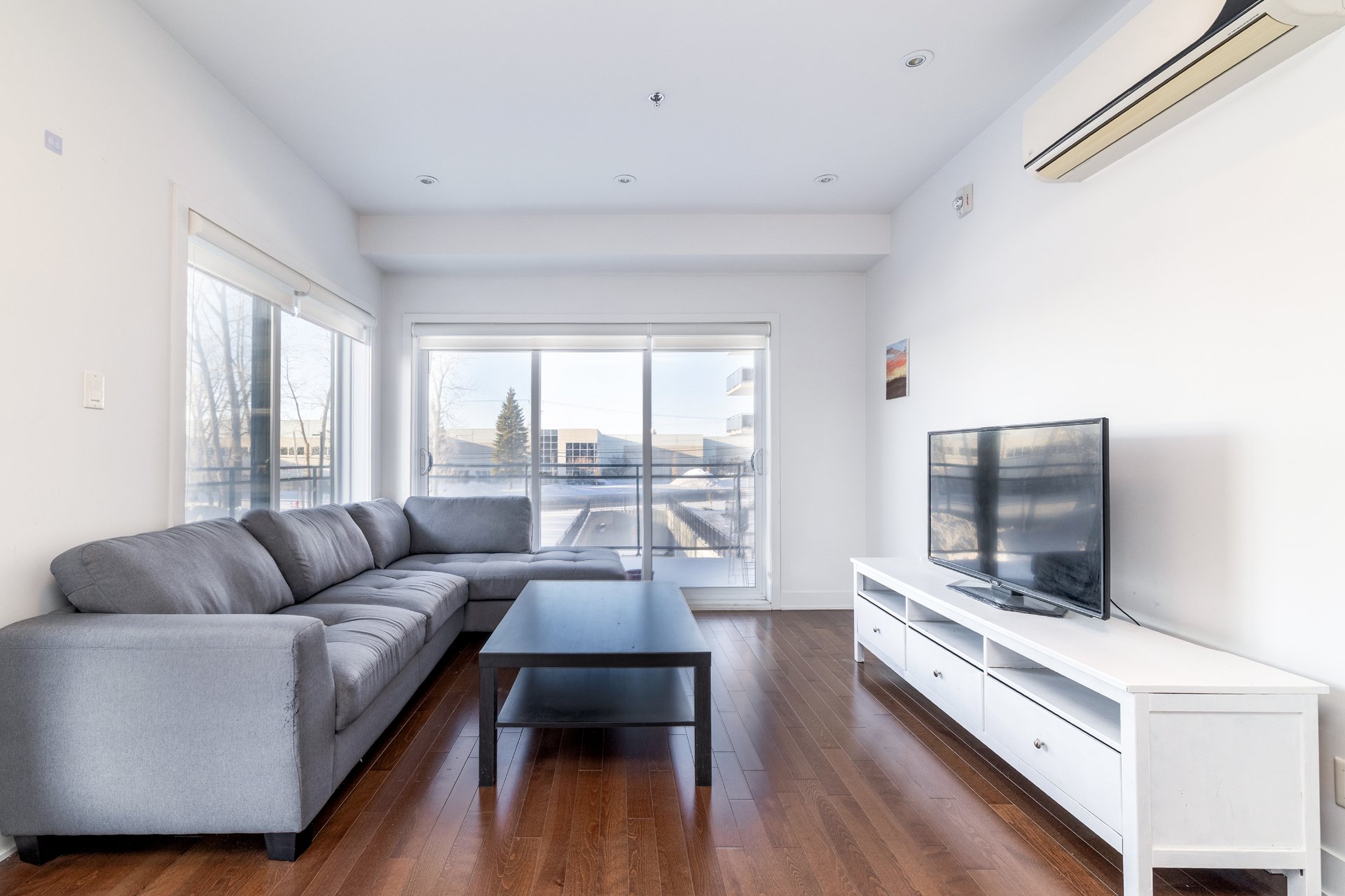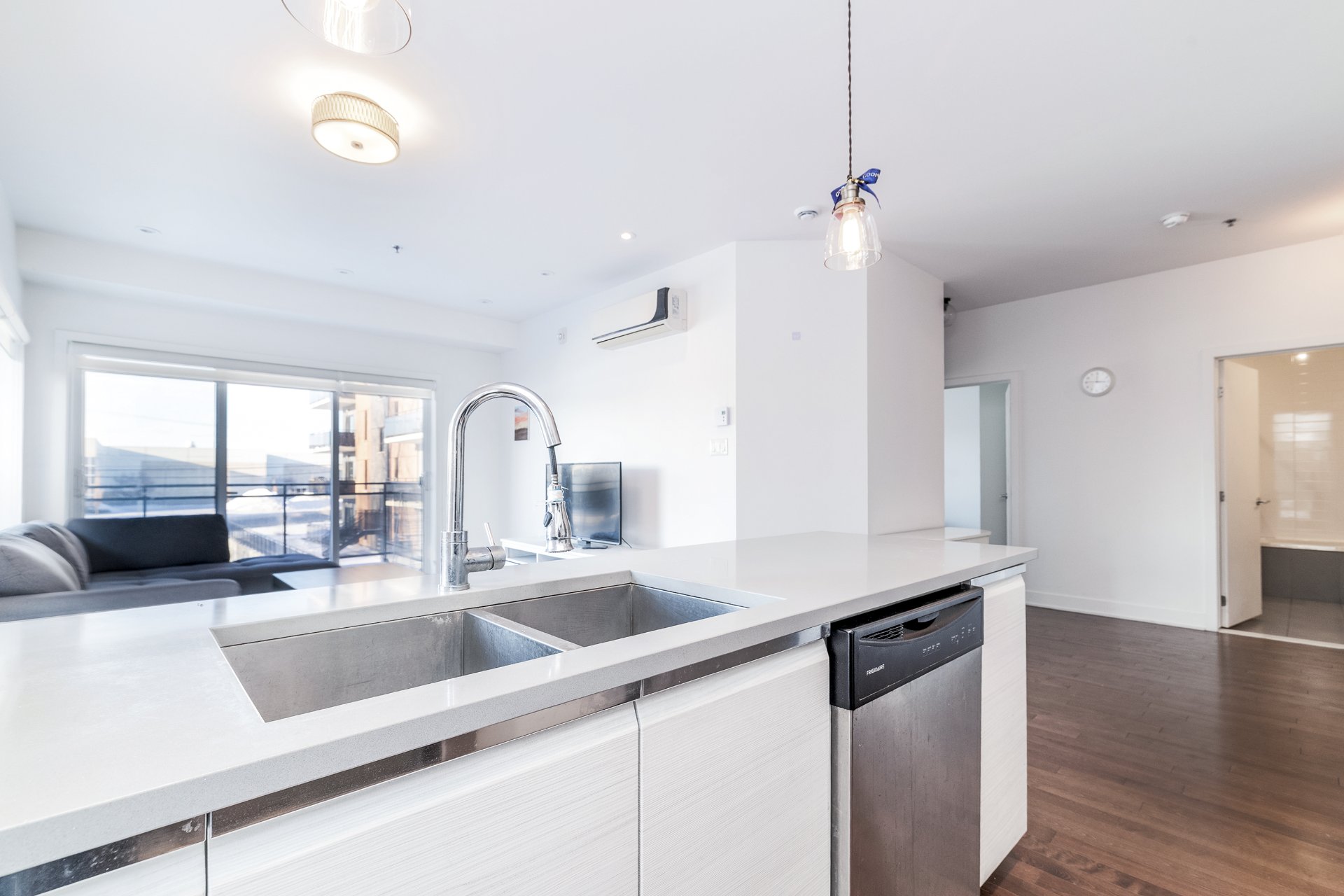 Designed for comfort and light, this second-floor corner unit in H1 Phase 2 offers an open, airy feel thanks to extensive windows throughout. A spacious wraparound balcony extends the living space outdoors. The two bedrooms are set apart from the main living areas, providing privacy and quiet, and both offer generous proportions and ample storage. Nine-foot ceilings and effective sound insulation create a peaceful environment. Indoor parking and a storage locker are included. Ideally located near REM stations, public transit, highways 40 and 20, and the shops and services of Des Sources and Saint-Jean.
