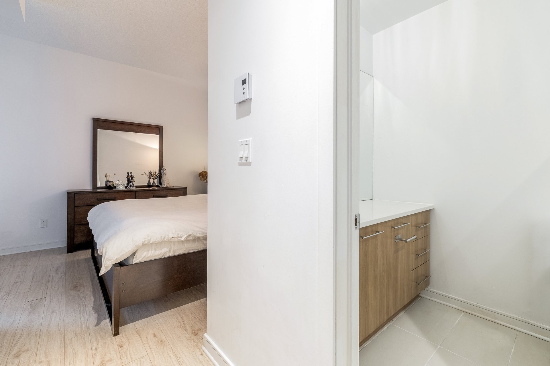 Corner unit condo with sought-after southwest orientation, featuring a private terrace overlooking a charming interior courtyard. Bright open-concept layout with quartz countertops, offering 2 bedrooms, 2 bathrooms, 1 indoor parking space and 1 locker. Ideally located just steps from everything: groceries, pharmacies, UQÀM, CHUM, multiple metro stations, Complexe Desjardins, Chinatown Montreal, Old Montreal, festivals, and Place des Arts.