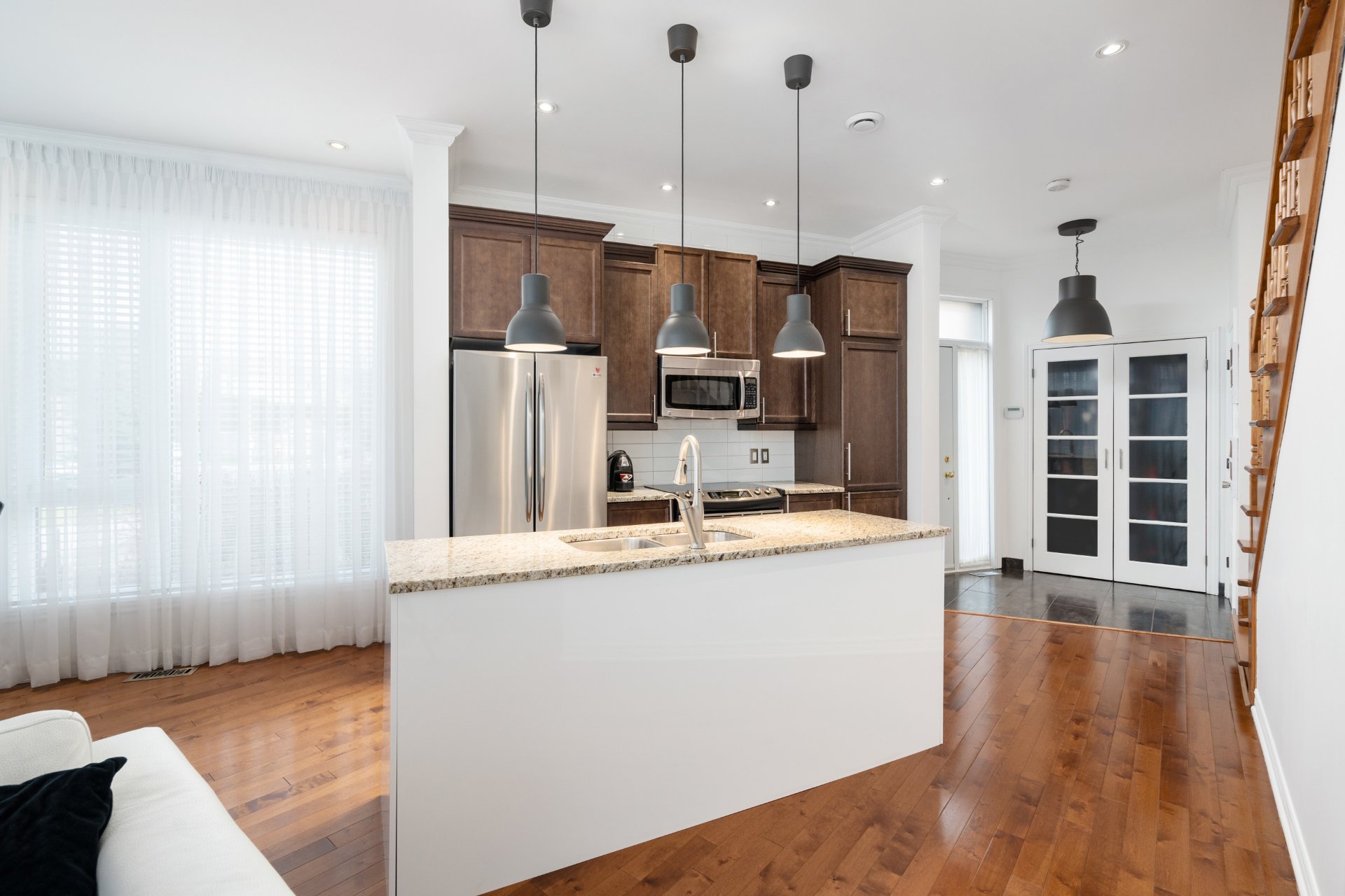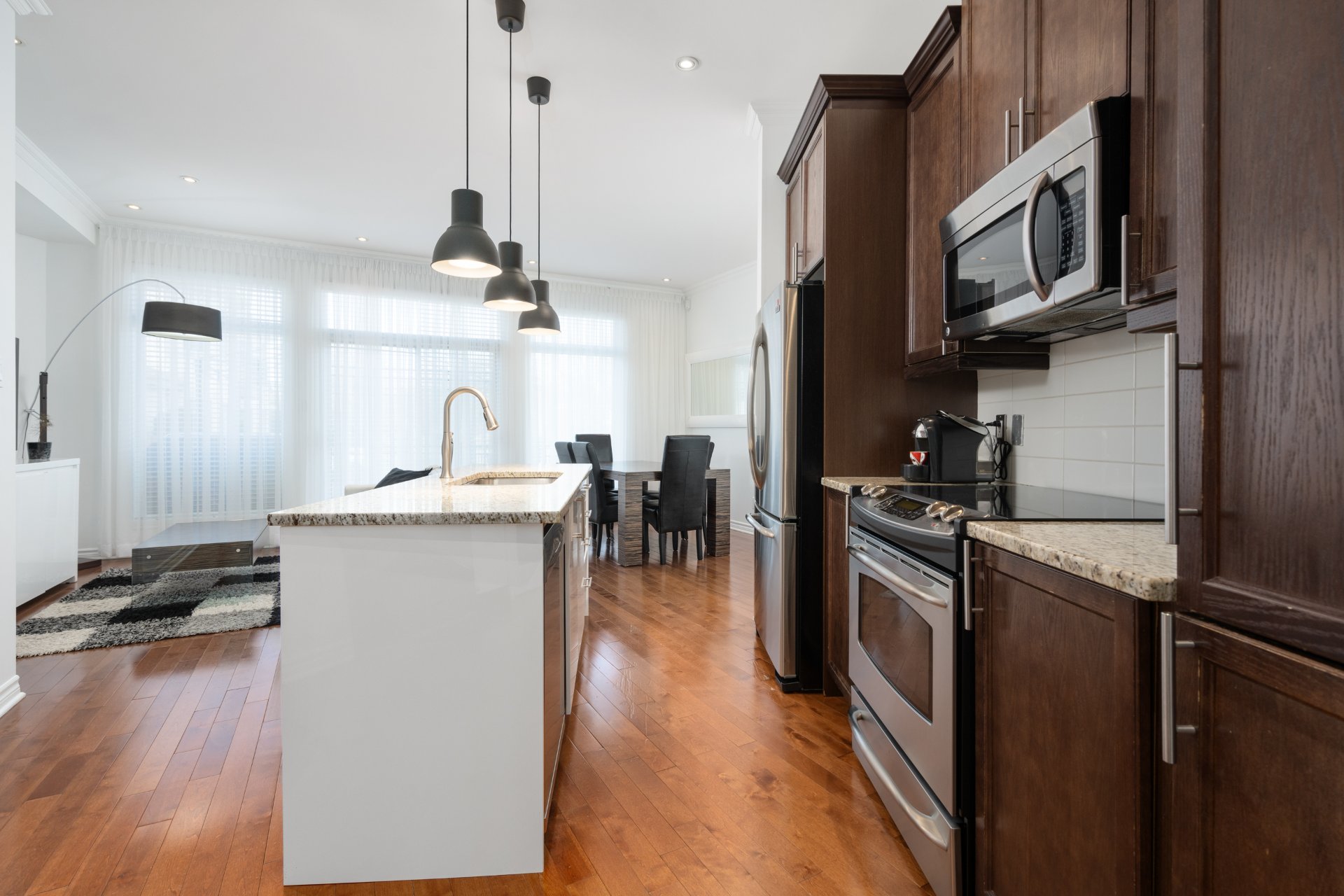 Impeccable fully furnished townhouse for rent in prestigious Sherwood area, Beaconsfield. This beautiful corner unit comes with a versatile and open concept layout, 9ft ceilings with recessed lightings, large windows throughout the living room bringing in lots of natural light, hardwood floor on both levels, high-end appliances and furniture included. Location: walking distance to Gare Beaurepaire, Gare Beaconsfield, very close to HWY 20 & HWY 40. Schools nearby: Saint-Rémi, Christmas Park, Sherbrooke Academy, Beaconsfield High school. Commercials: Walmart Supercentre, Metro Plus, Provigo, Fairview Pointe-Claire.