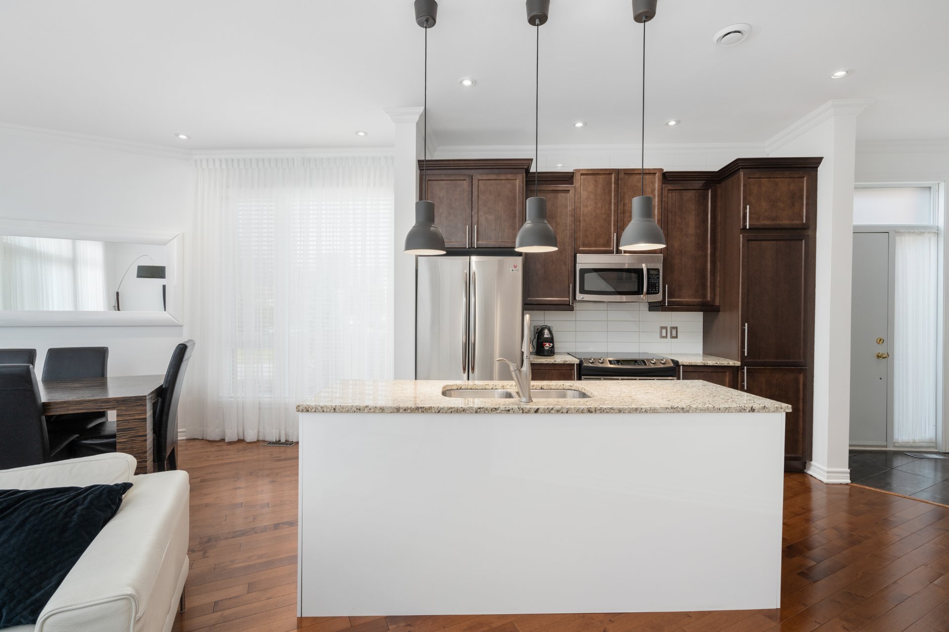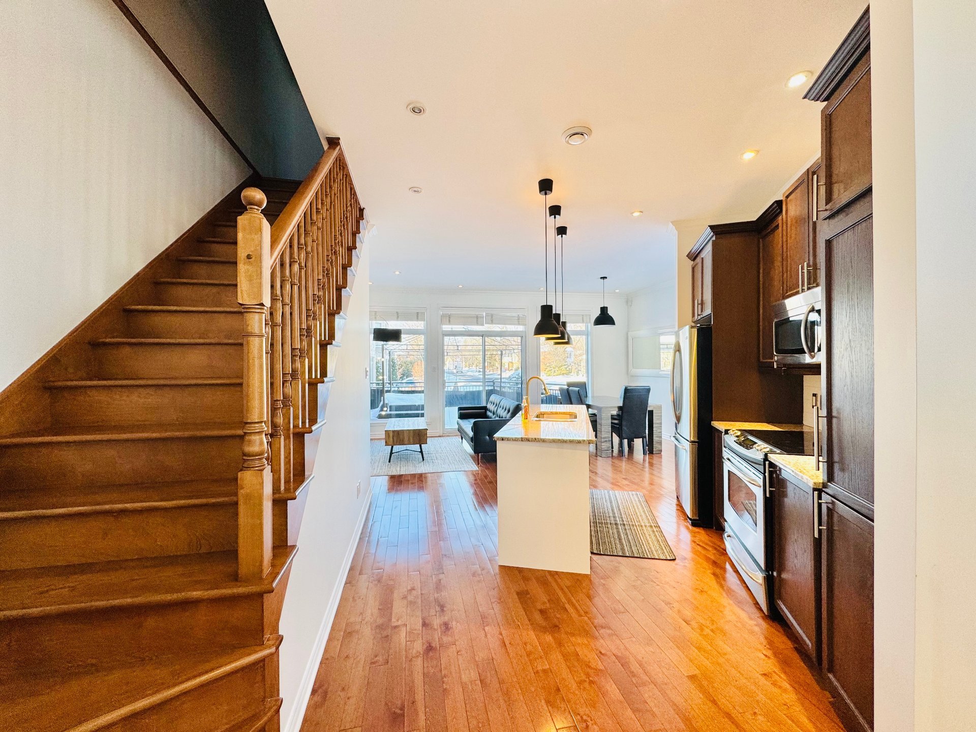 Impeccable fully furnished townhouse for rent in prestigious Sherwood area, Beaconsfield. This beautiful corner unit comes with a versatile and open concept layout, 9ft ceilings with recessed lightings, large windows throughout the living room bringing in lots of natural light, hardwood floor on both levels, high-end appliances and furniture included. Location: walking distance to Gare Beaurepaire, Gare Beaconsfield, very close to HWY 20 & HWY 40. Schools nearby: Saint-Rémi, Christmas Park, Sherbrooke Academy, Beaconsfield High school. Commercials: Walmart Supercentre, Metro Plus, Provigo, Fairview Pointe-Claire.