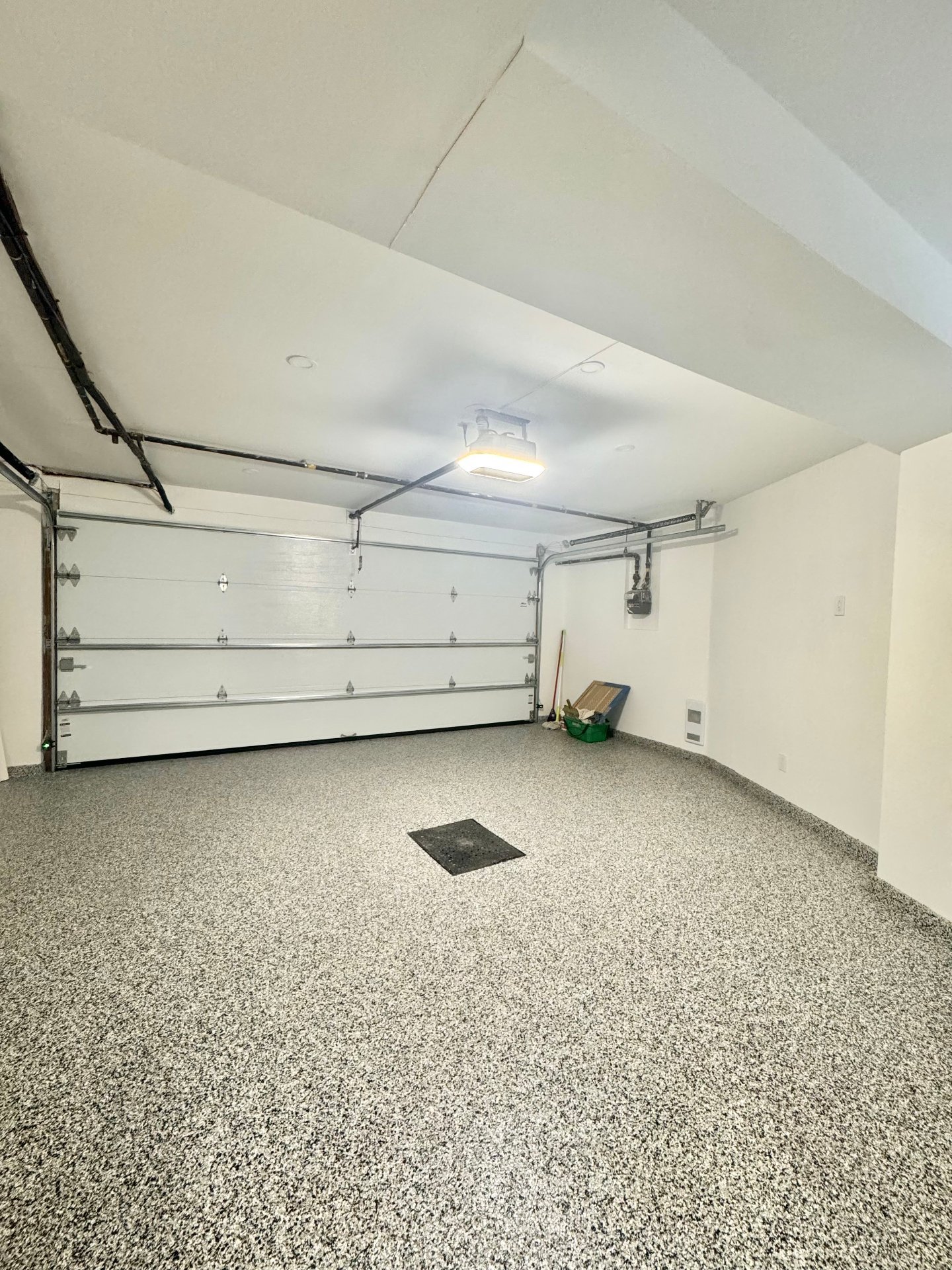- A large size garage with epoxy flooring that can fit 2