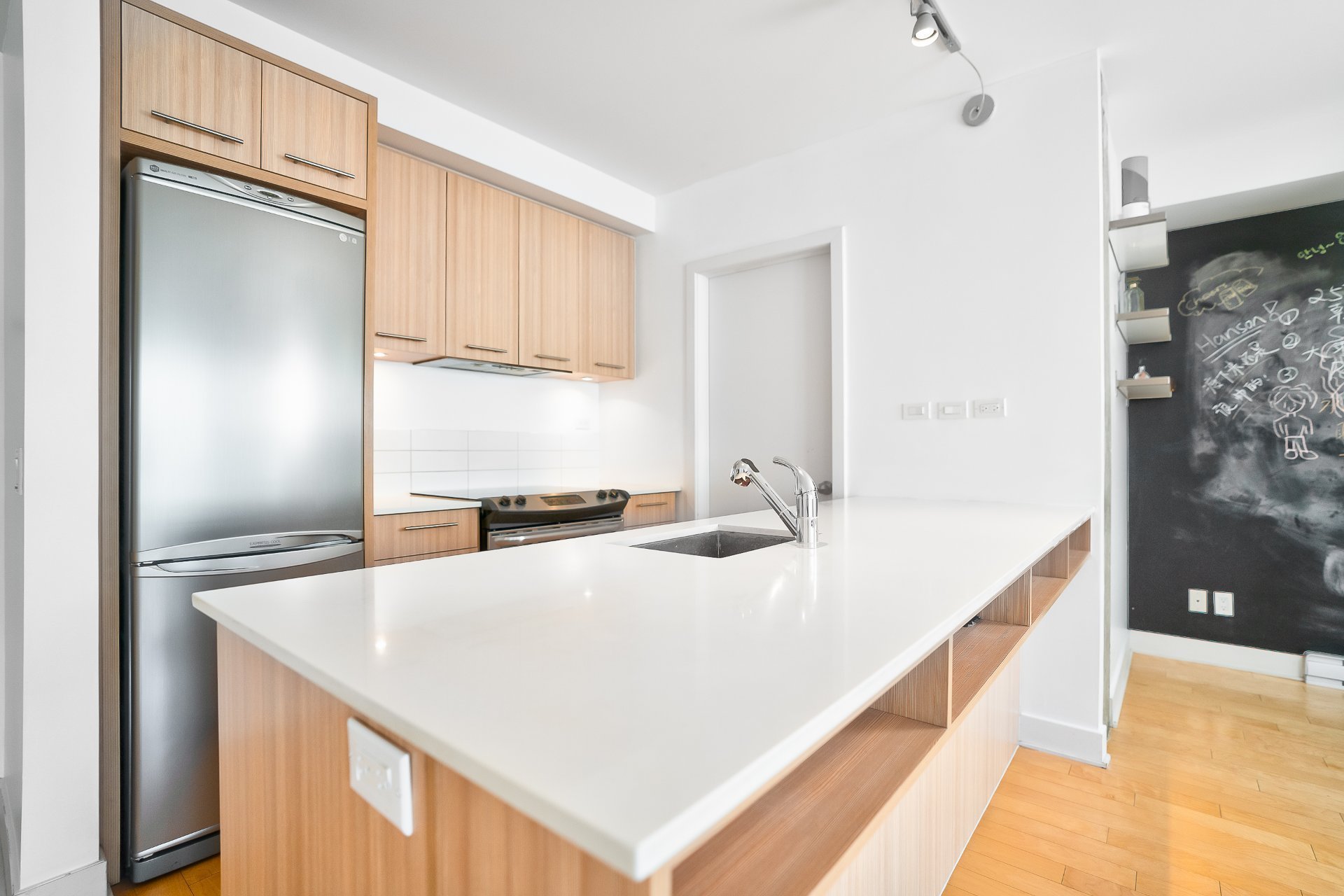 Spacious 2 BDR unit in downtown Montreal. Building amenities: security, secured delivery storage system, fully equipped gym, 4-season pool, saunas, spas, playrooms, rooftop terraces with BBQ center and outdoor pools, urbain chalet with panoramic views of the city.
