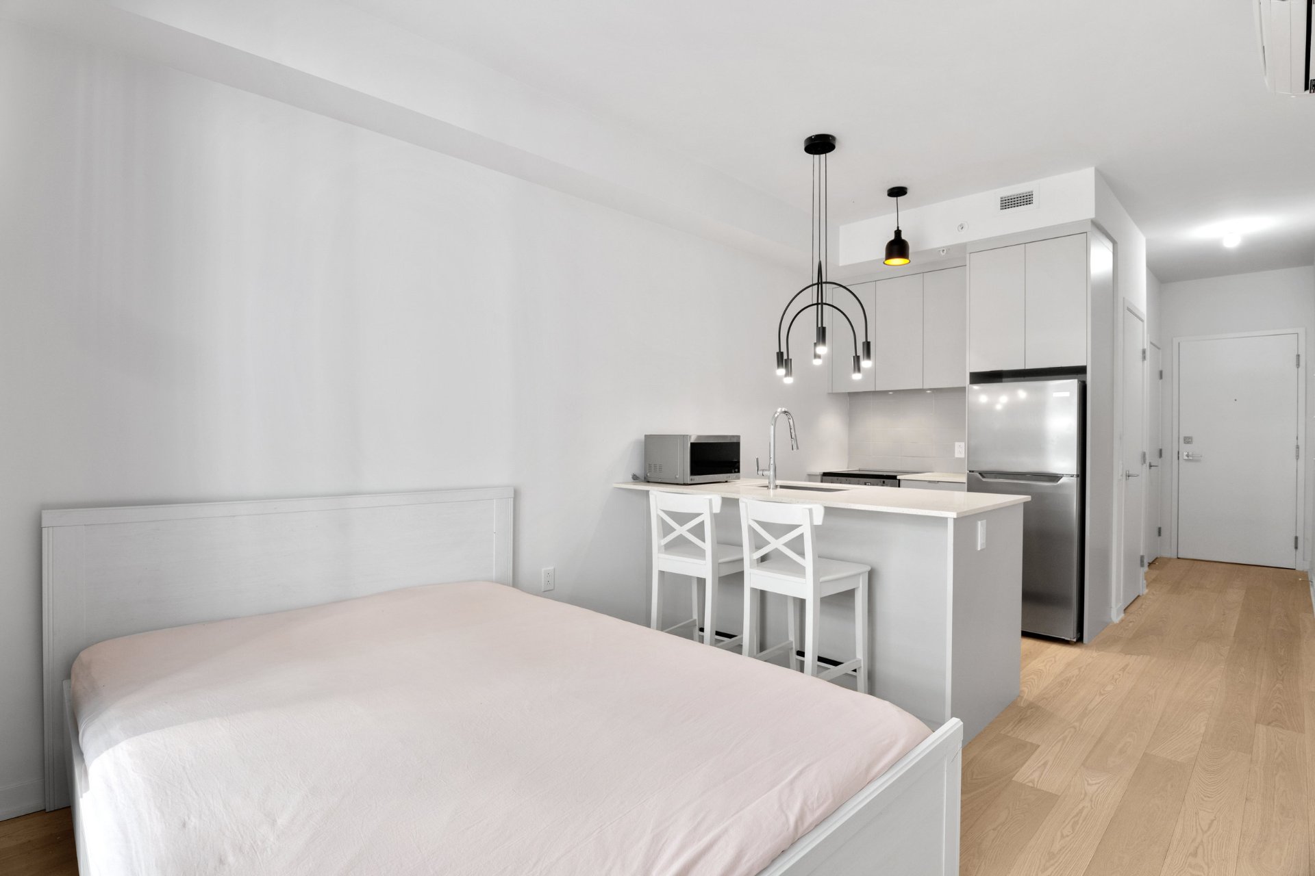 full furnished, stove, dishwasher, refrigerator, microwave, washer and dryer, hot water, wall-mounted AC