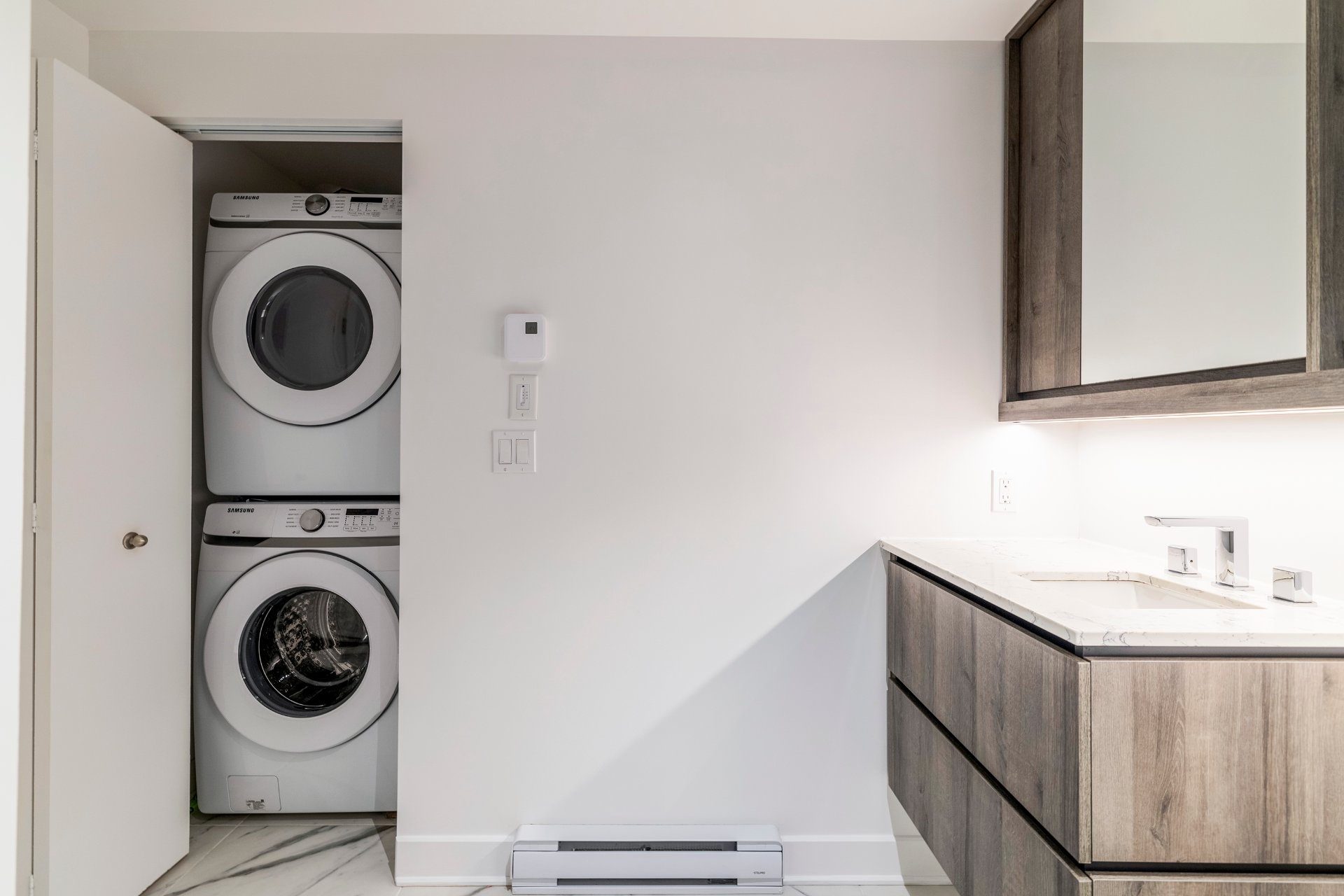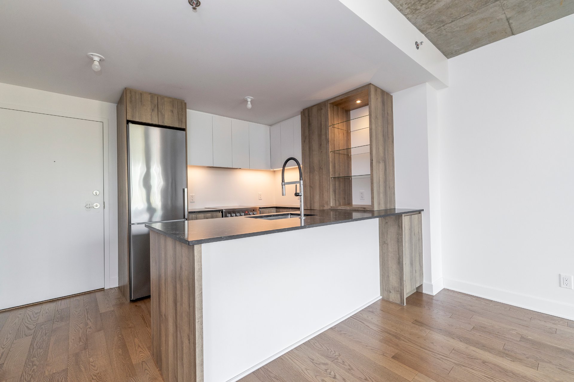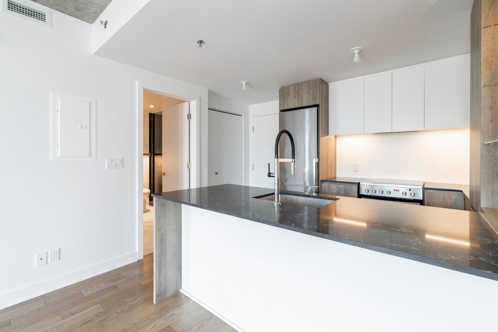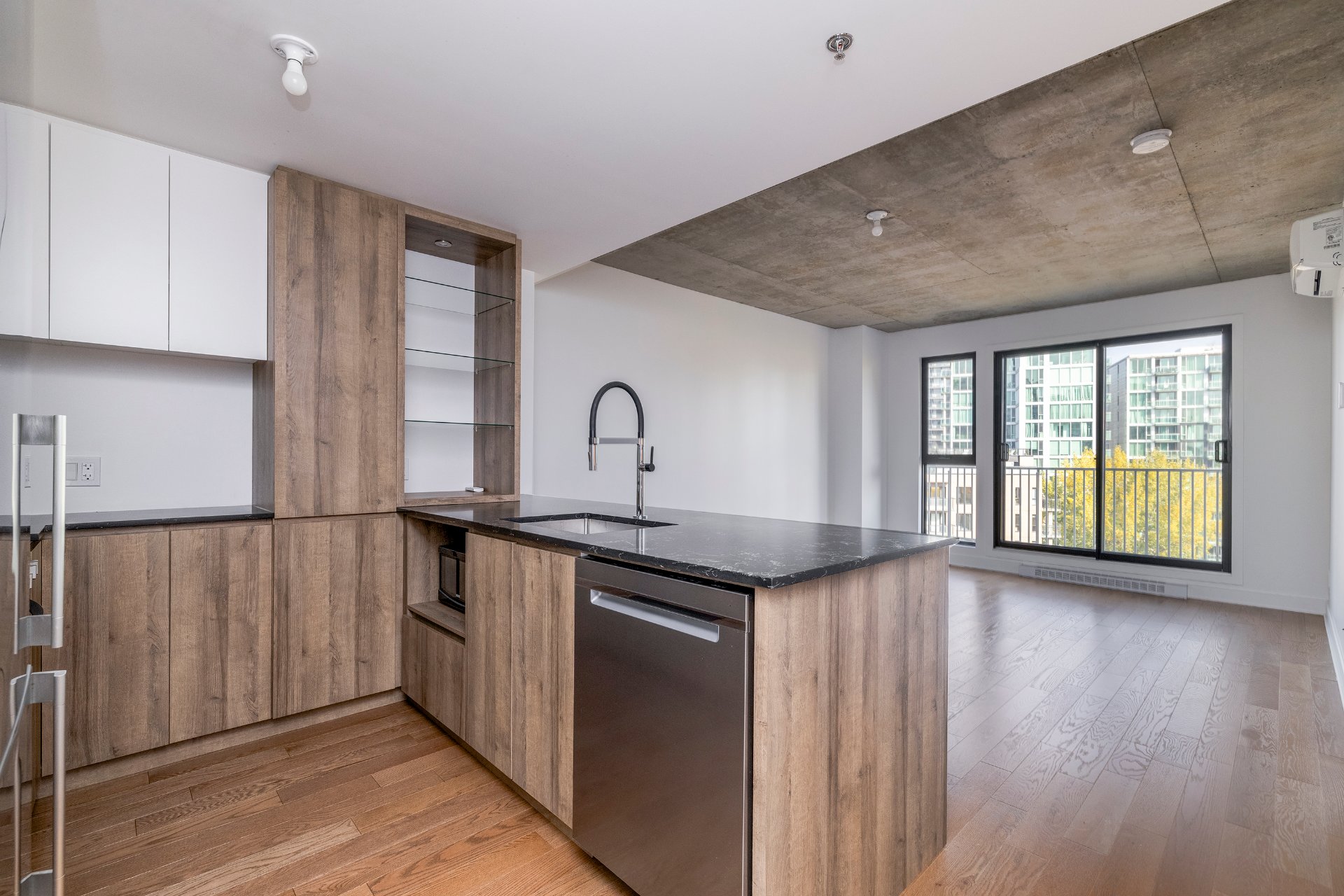 Rare on the market with an open view. Just minutes from downtown, Old Montreal, and the Lachine Canal, this luminous southwest-facing condo in AMATI captures the perfect balance of urban excitement and peaceful charm. Facing a beautiful park and bathed in sunlight, it's surrounded by cafés, restaurants, Adonis, SAQ, and Peel Street shops. Residents enjoy an exclusive rooftop retreat featuring lounge areas, a sauna, BBQs, and Griffintown's longest elevated pool--where sophistication, comfort, and city living unite.