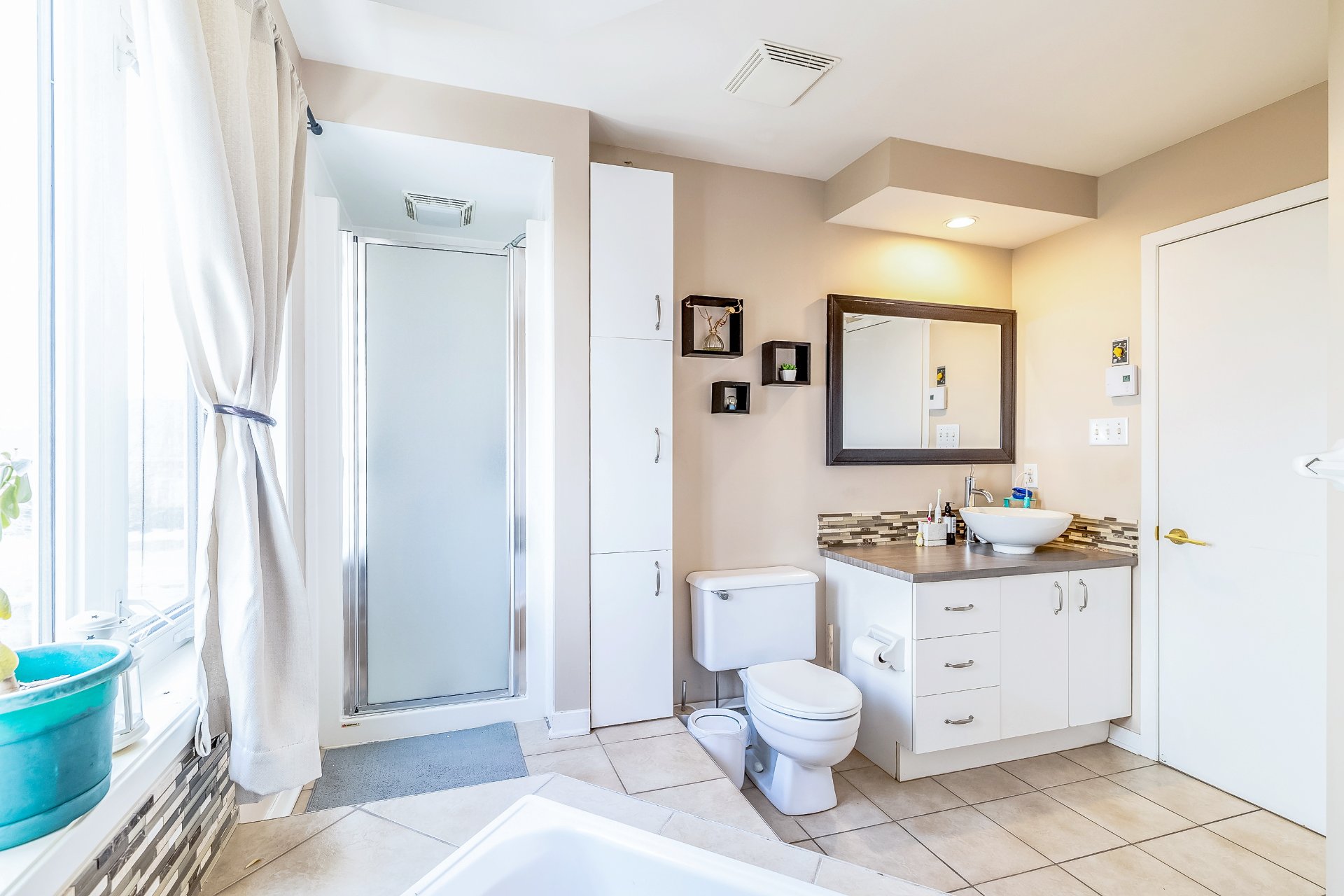 sleek full bath, offering a secluded haven for guests or a