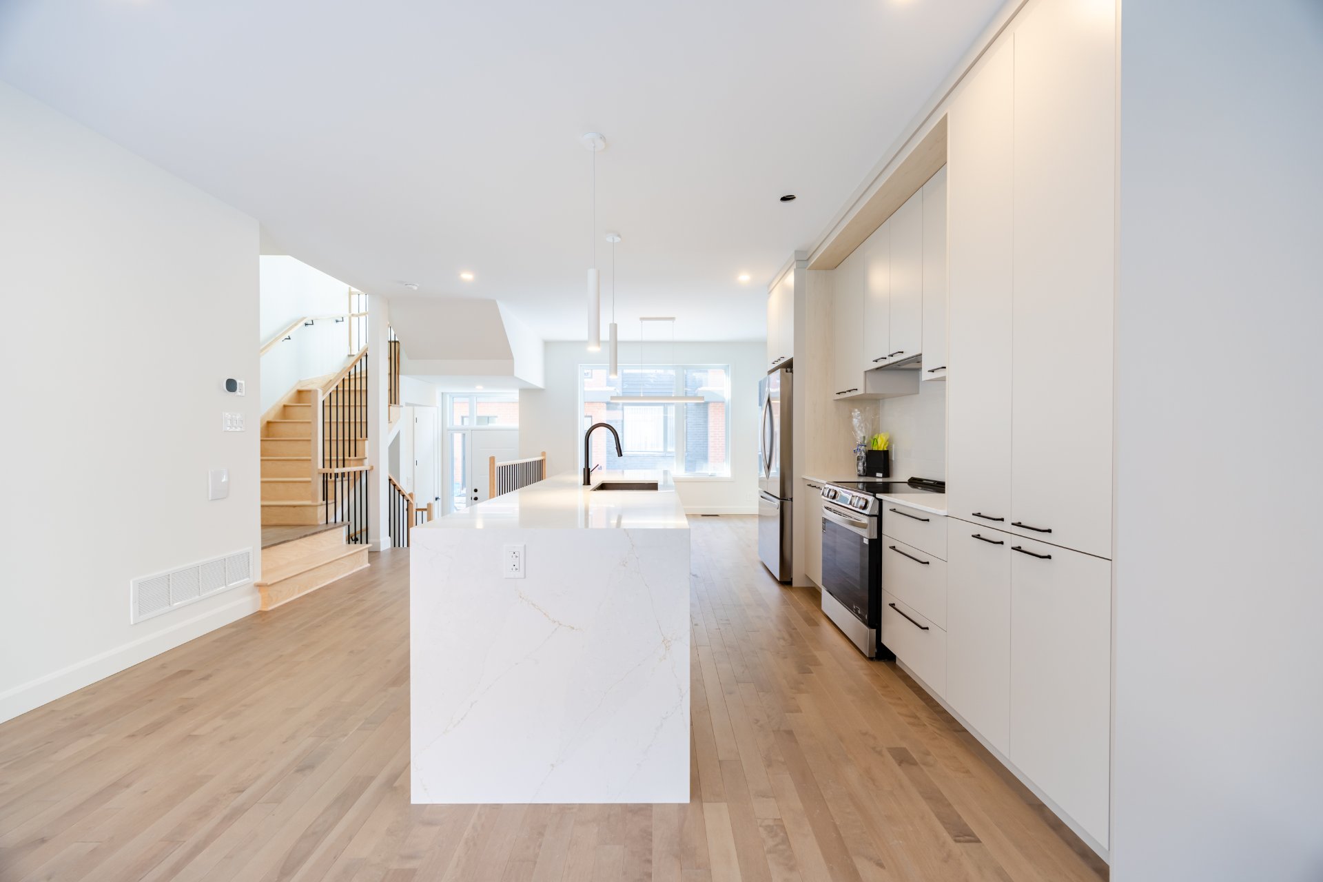 Brand-New Townhouse -- High-End Upgrades | 1960 Cloutier, Brossard Beautiful new construction middle-unit townhouse located in a luxury sector of Brossard. Offering 3 bedrooms, 2 bathrooms upstairs, a finished basement, and central AC. Built with high-end materials and many upgrades, this home is clé en main and ready to move in. Just a short walk to schools and parks -- an ideal choice for families!
