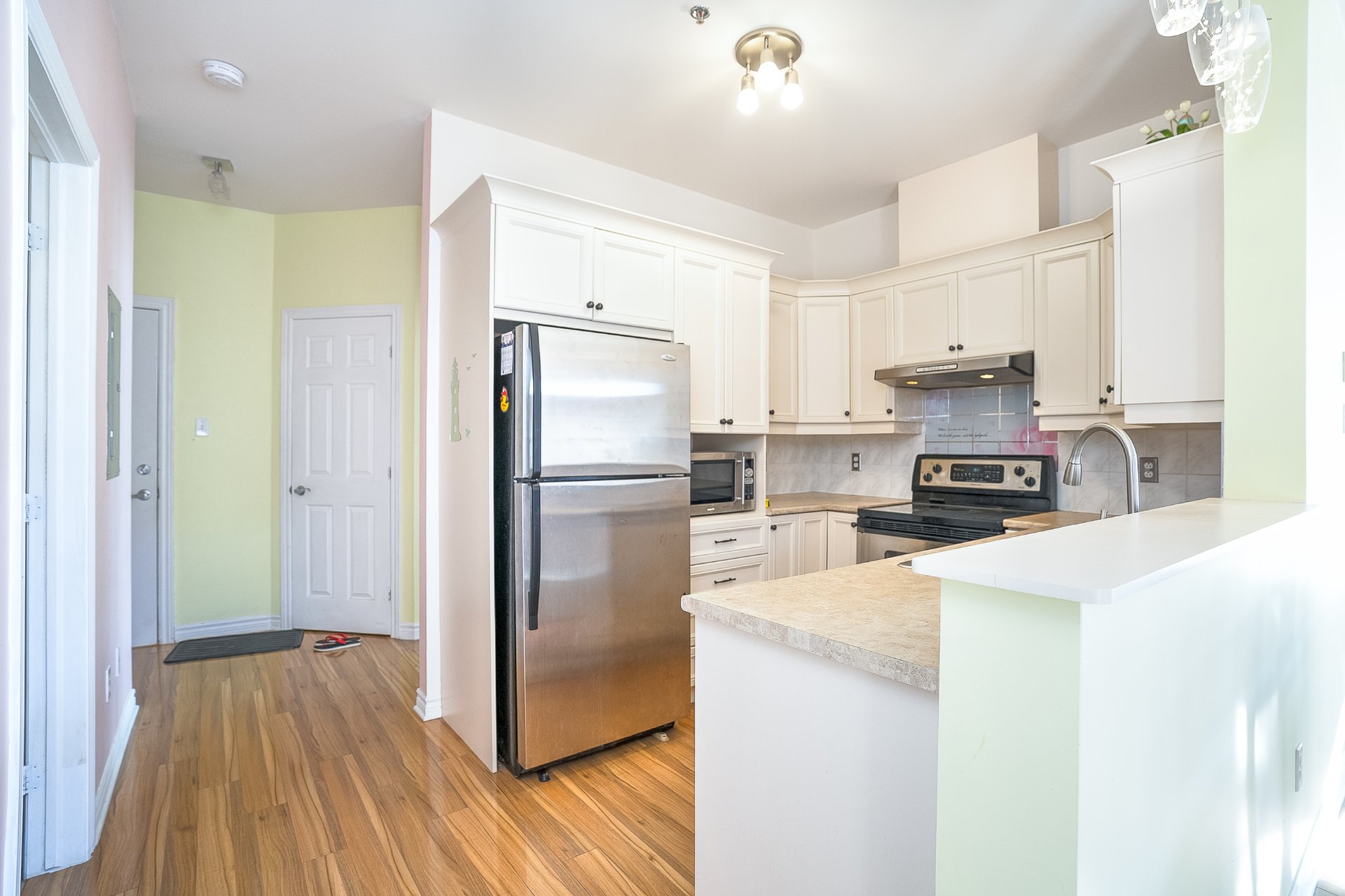 Beautiful southeast-facing condo in the heart of La Prairie! This bright corner unit enjoys abundant sunlight throughout the day and offers exceptional convenience -- the bus terminal is just steps from your door. The property has been very well maintained by the original owner and includes an oversized indoor parking space. The neighborhood is peaceful with friendly neighbors and a calm, family-friendly atmosphere. Perfect for those seeking comfort, convenience, and tranquility!