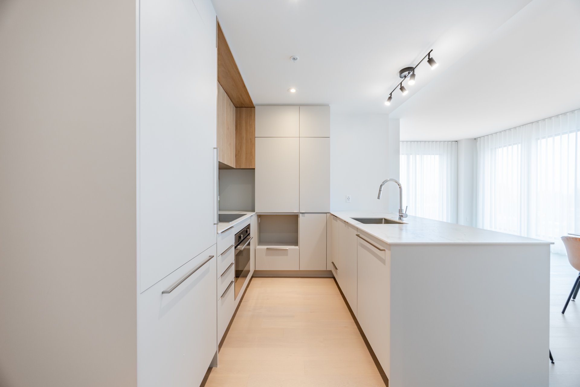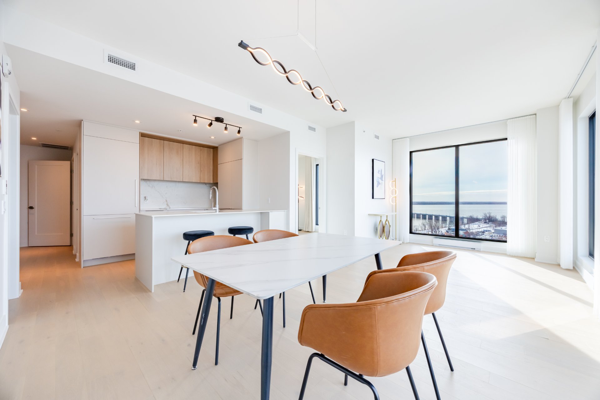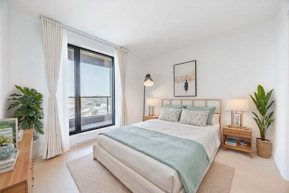 Occupancy immediately. Facing south with lots of sunlight. Condo with magnificent view of the water. 2 bedrooms and 2 bathrooms. Located in the heart of the Pointe Nord district, Evolo NEX offers a connected lifestyle by combining the dynamism of the city and the tranquility of nature. 1 indoor parking, preparation for a charging station for electric car and a storage locker.