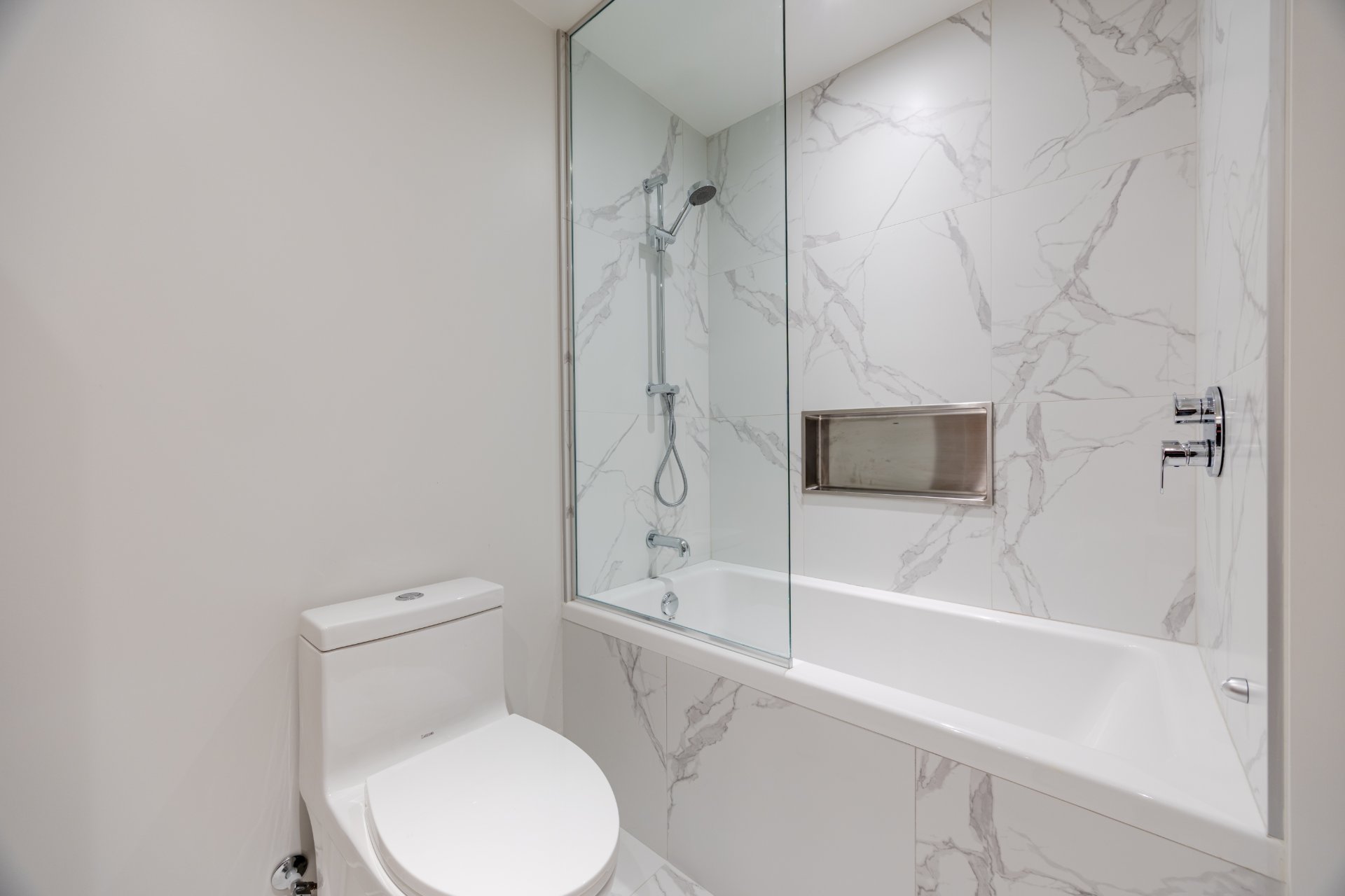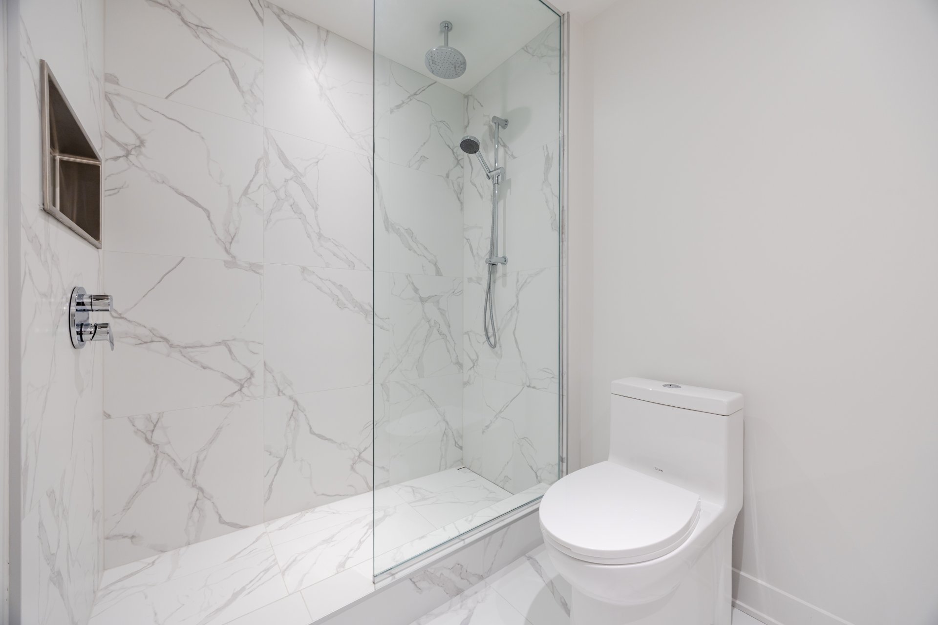 bathroom with ceramic shower and niche;
