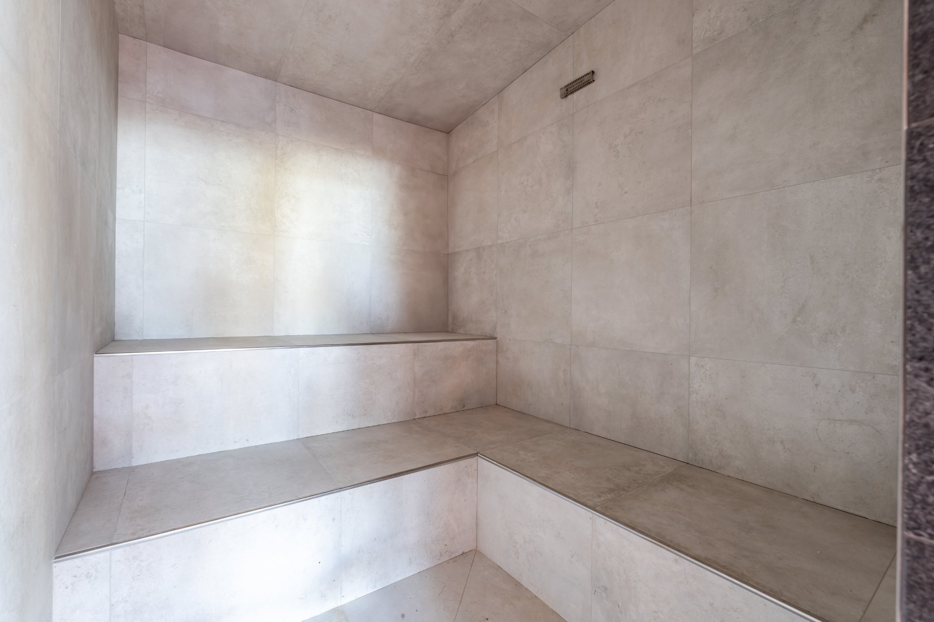 bath, steam sauna and relaxation lounge with fireplace