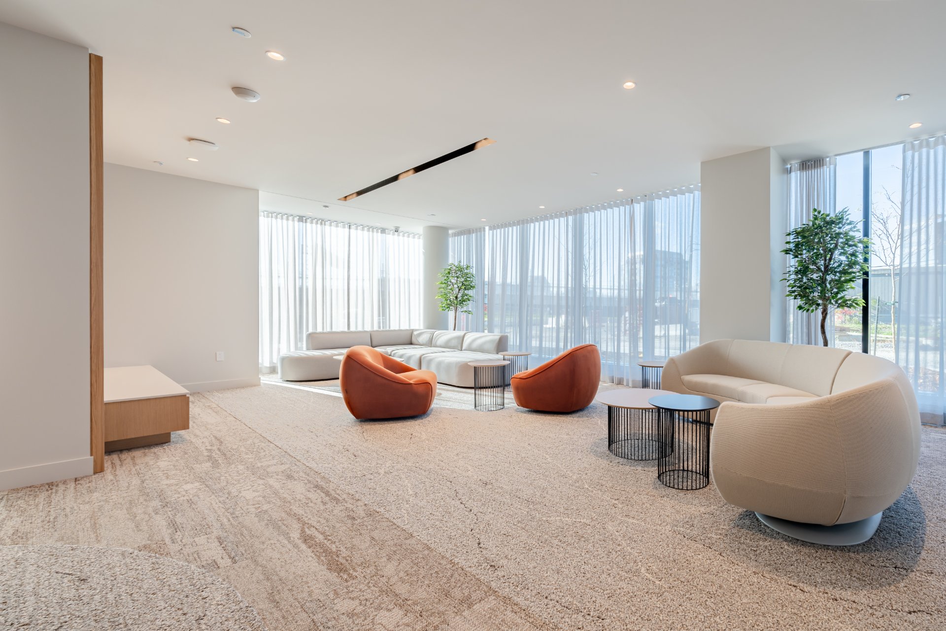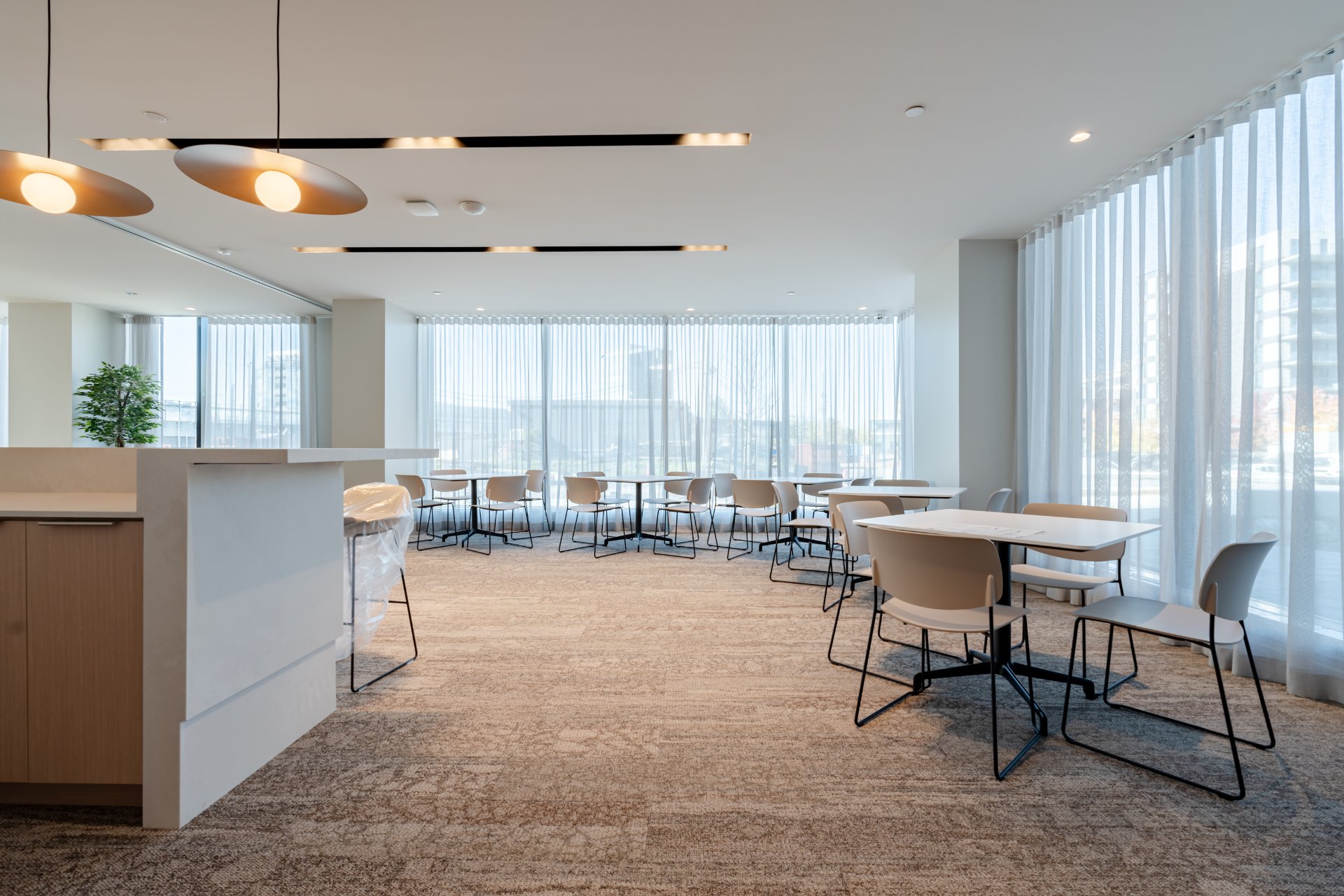 - Abundant windows encourage natural light and direct views
