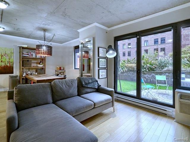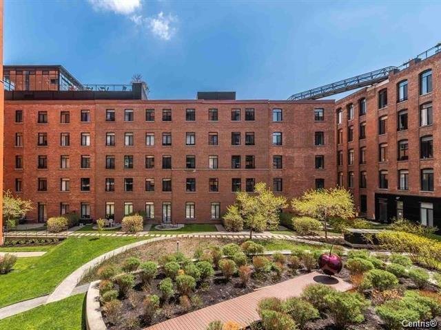 Rare corner 2 bed 1 bath condo with private yard in the heart o Griffintown! This unit has the biggest private terrace of the building ( 35X16 ) facing the INTERIOR COURTYARD. Walking distance of Bonnaventure metro, downtown, old montreal and all services ( grocery store, restaurants, etc..) The building offers a gym, elevators, a rooftop terrace with a pool and BBQ's!
