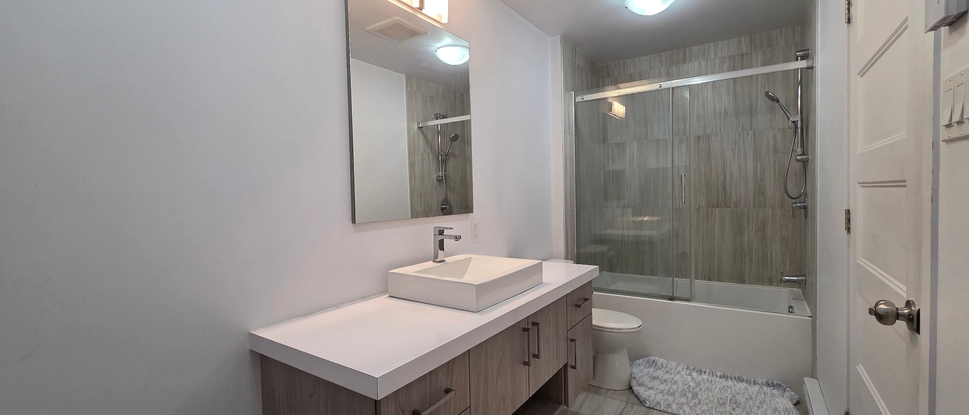 Recently renovated and freshly painted, this apartment is located in a sought-after neighborhood, just steps from the Metro supermarket and only a 5-minute drive from the Champlain Bridge, Quartier DIX30, the Panama terminus and the REM.