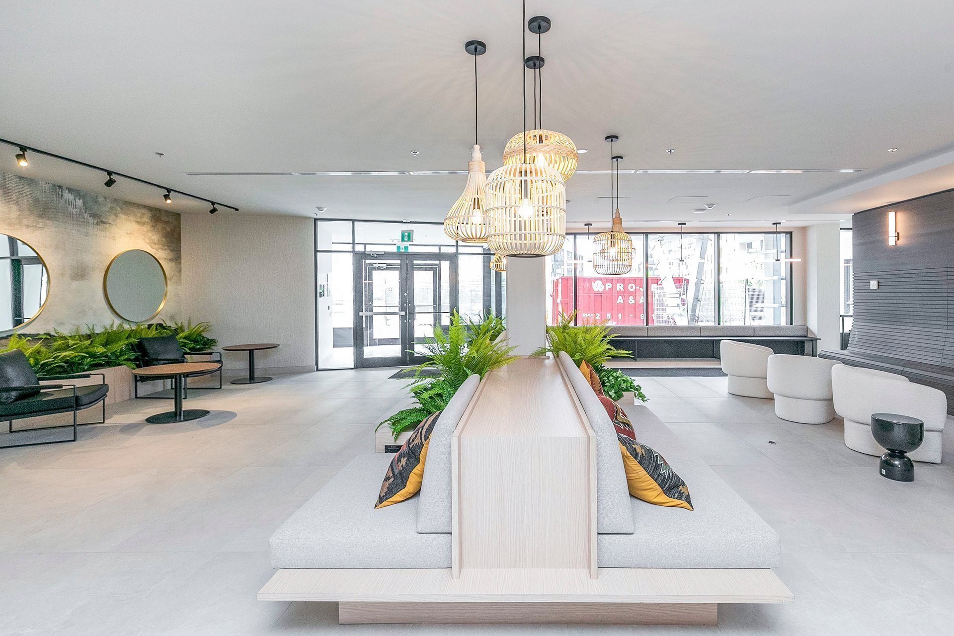 In front of Supermarket and restaurants. Very convinience.