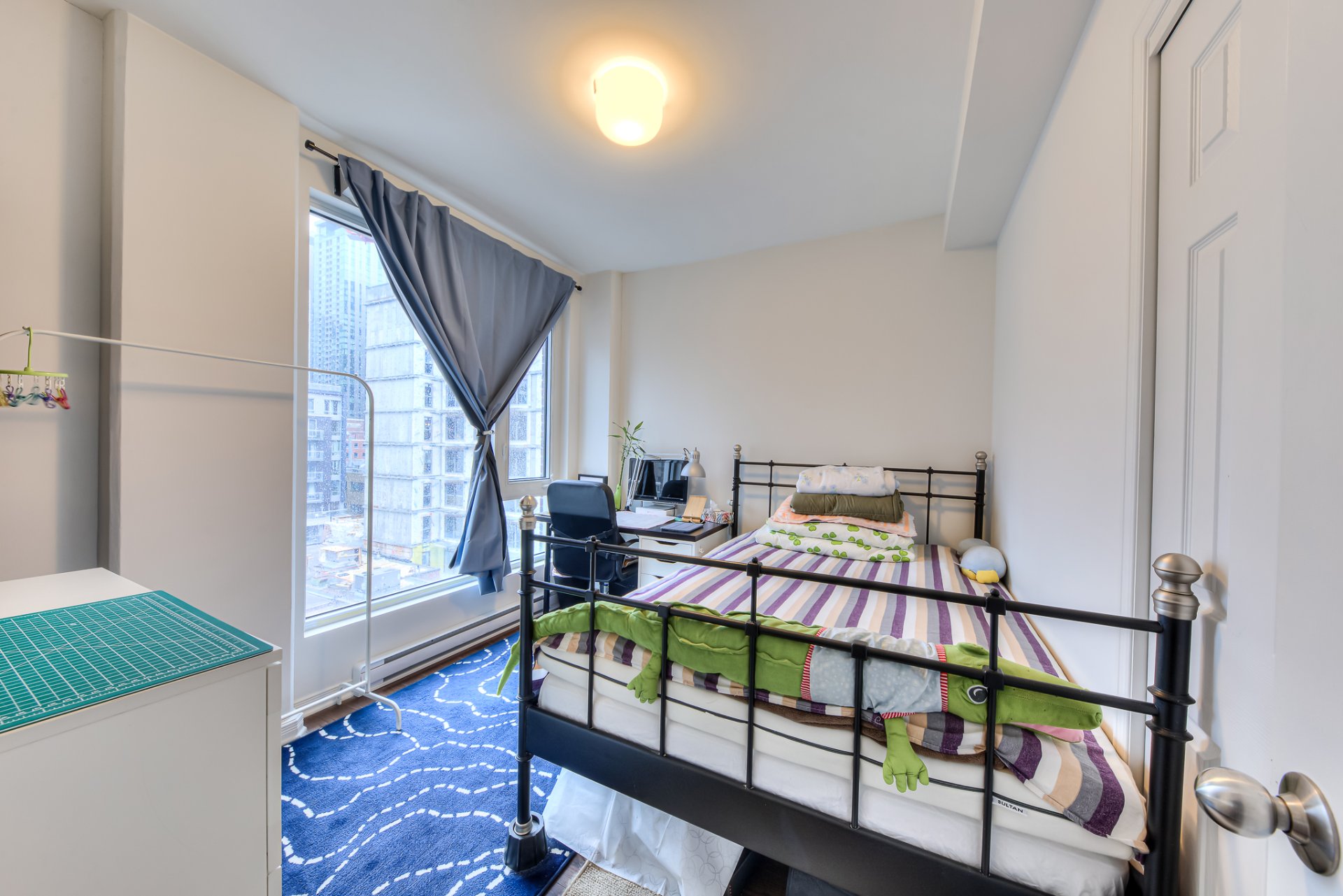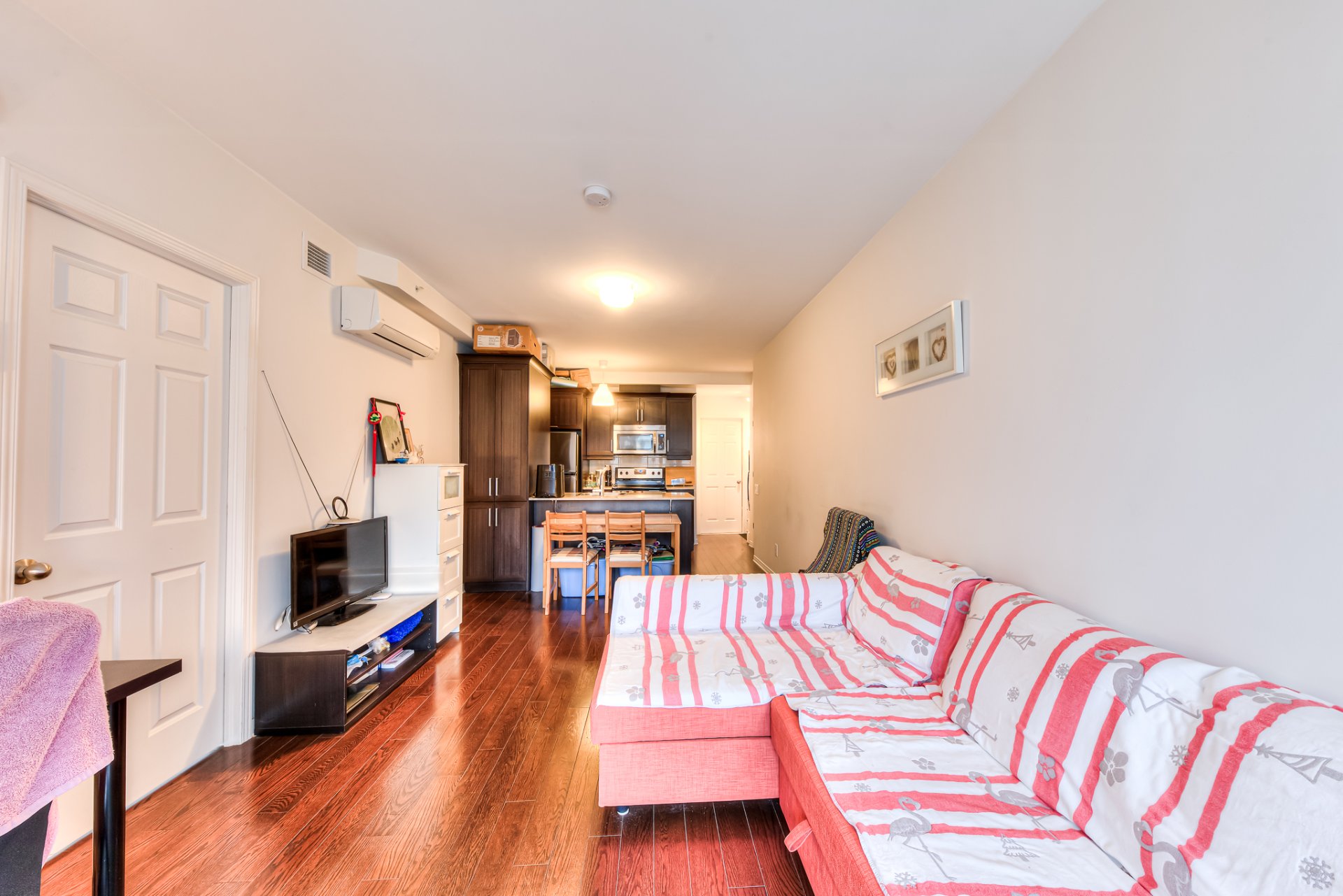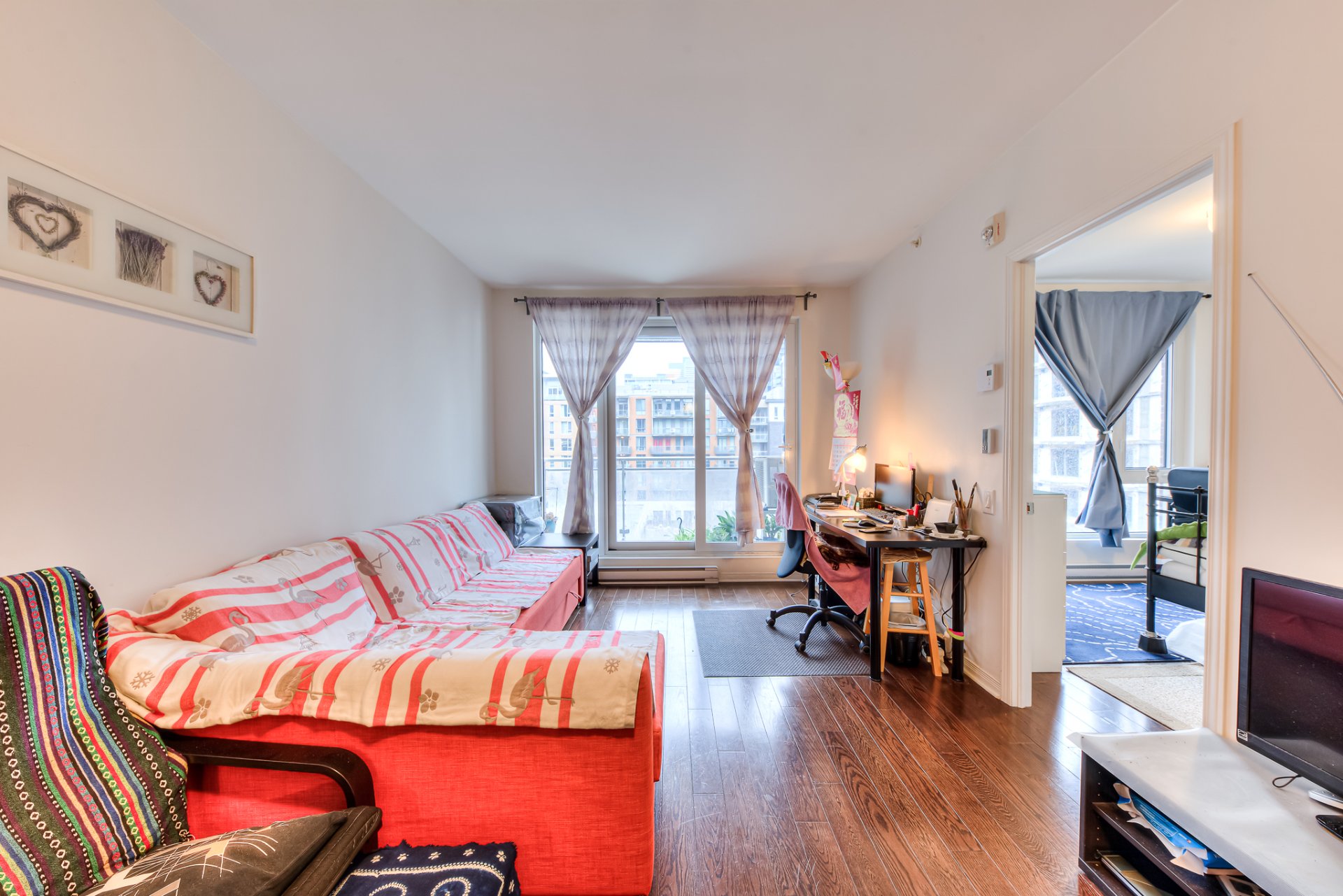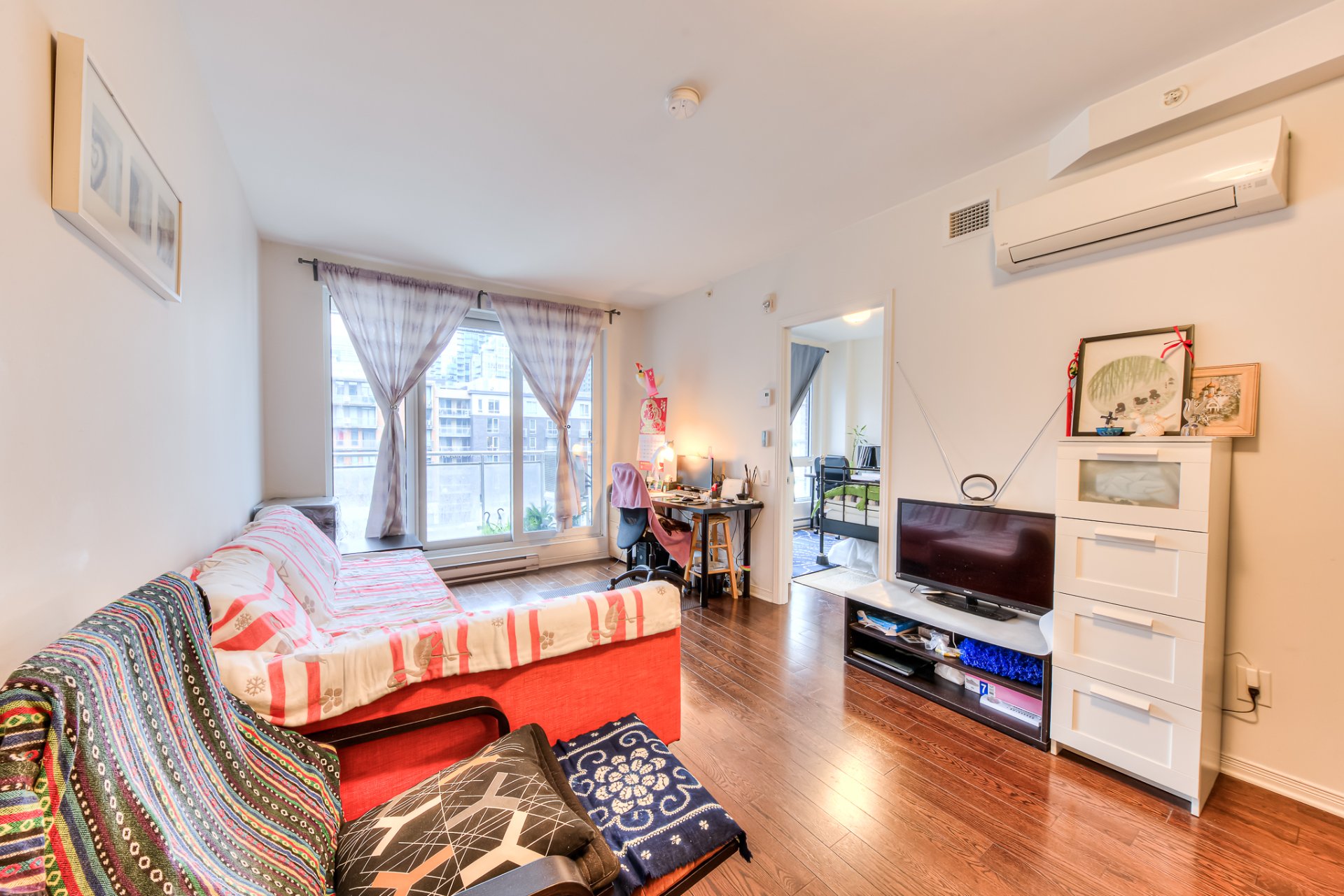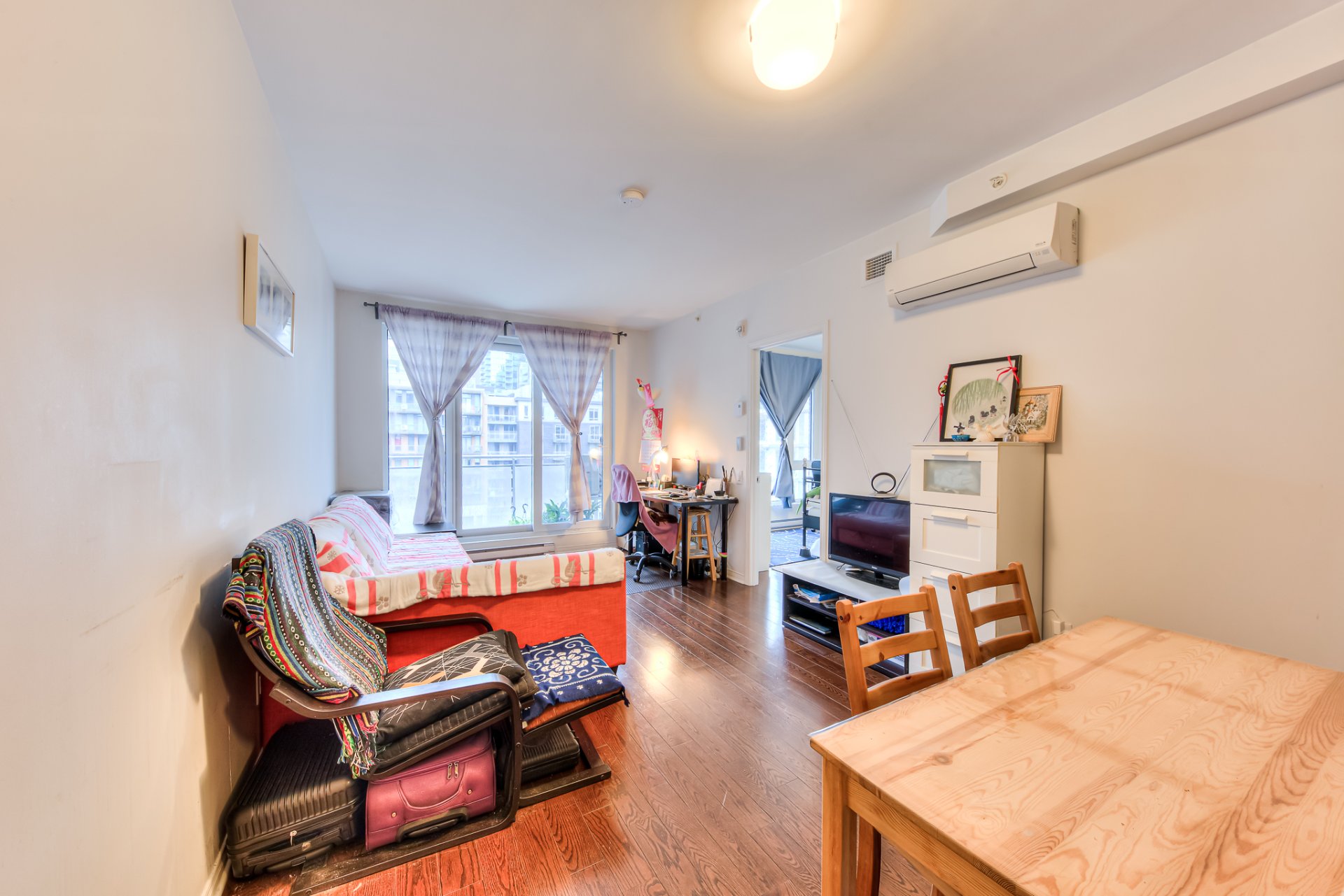 Situé dans une rue tranquille du centre-ville de Montréal, cet appartement offre un havre de paix au coeur de la ville, baigné de lumière naturelle. Son balcon privé offre une vue imprenable sur le paysage urbain. L'agencement bien pensé comprend une chambre spacieuse et bien proportionnée ainsi qu'un séjour lumineux et aéré, parfaitement adapté aux besoins quotidiens d'une personne seule ou d'un jeune couple.